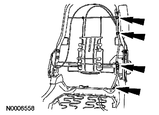 CAUTION: Make sure the side air bag module wiring harness is not pinched between the side air bag module and the backrest frame.
