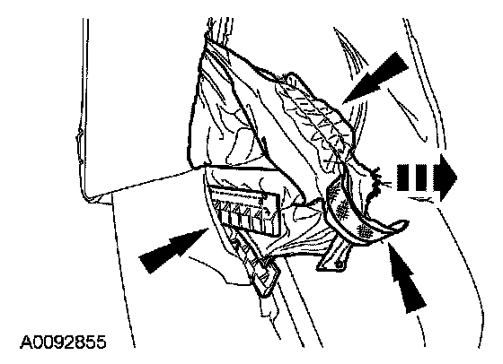 18. Release the side air bag module backrest trim cover chute J-clip from around the side air bag module cover.