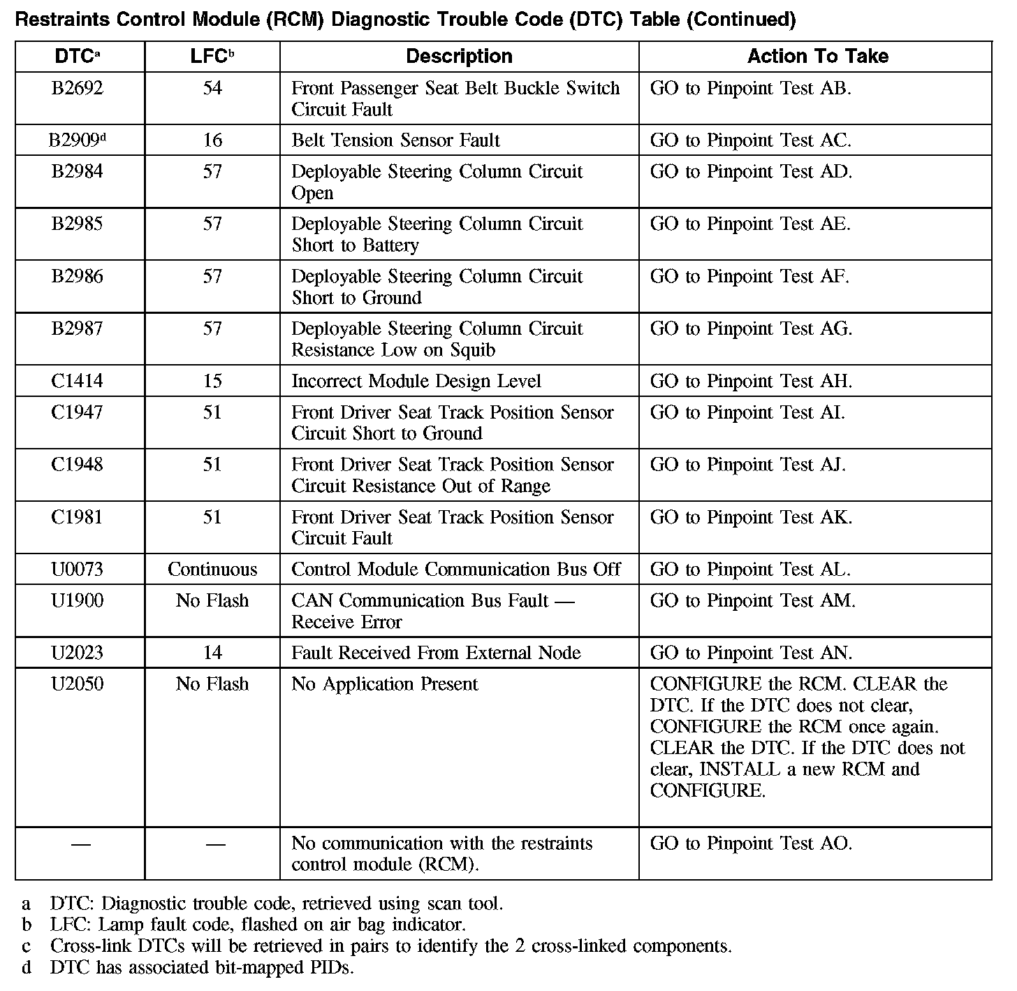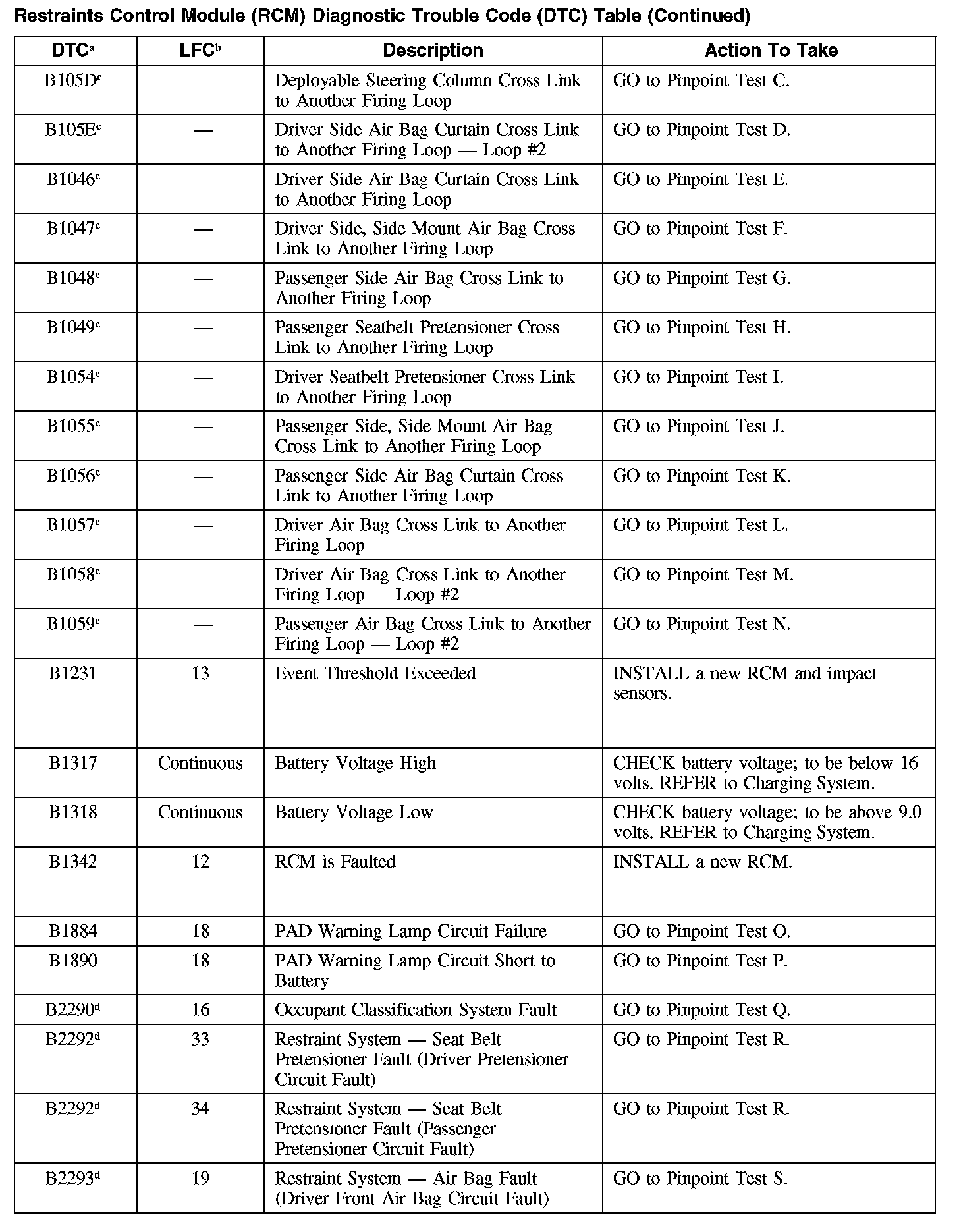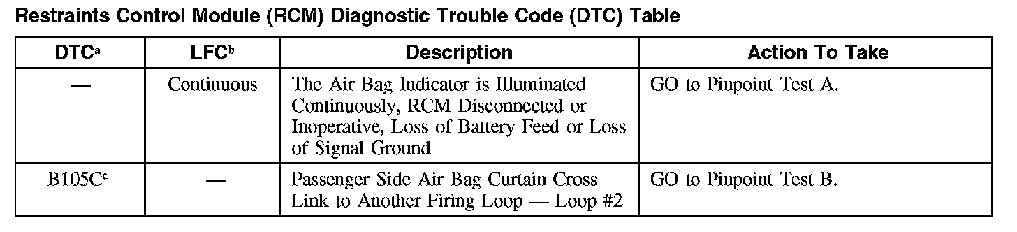RESTRAINTS CONTROL MODULE (RCM) DIAGNOSTIC TROUBLE CODES (DTCs)B105C: