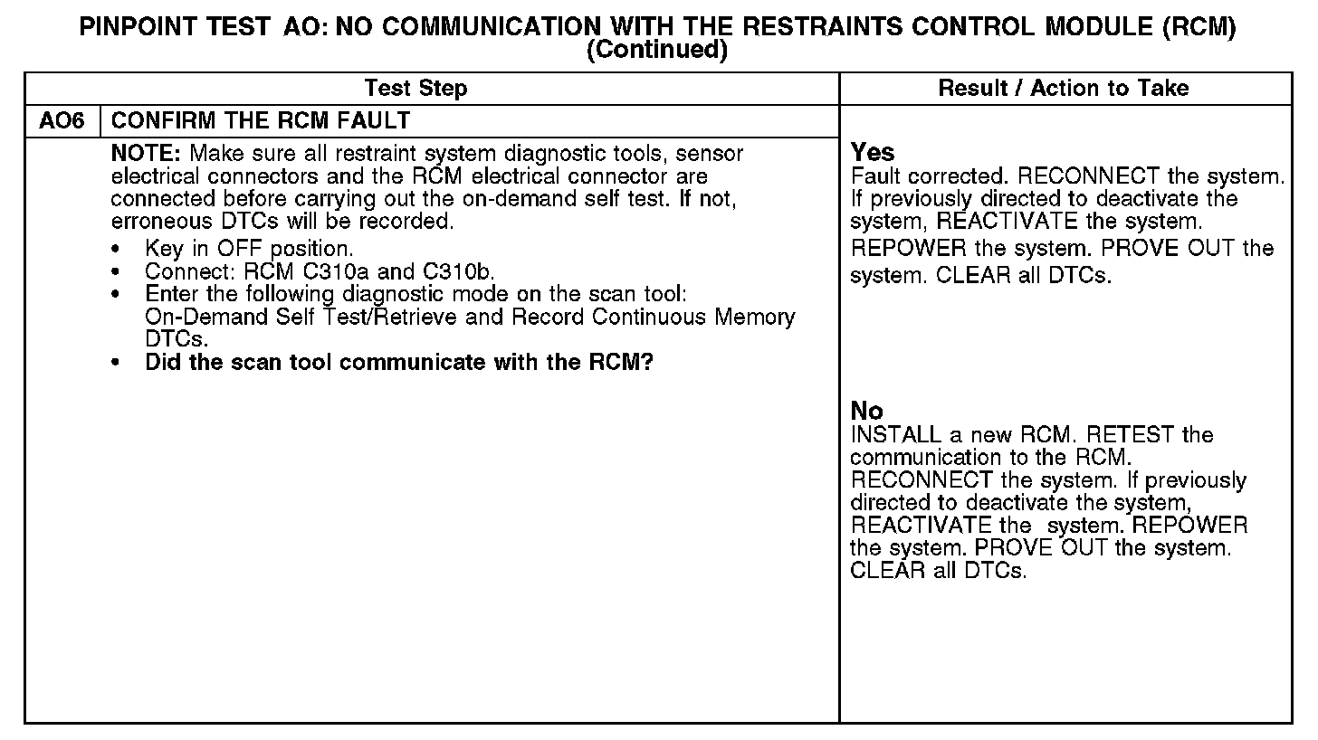 Tests AO: No Communication With the Restraints Control Module (RCM)