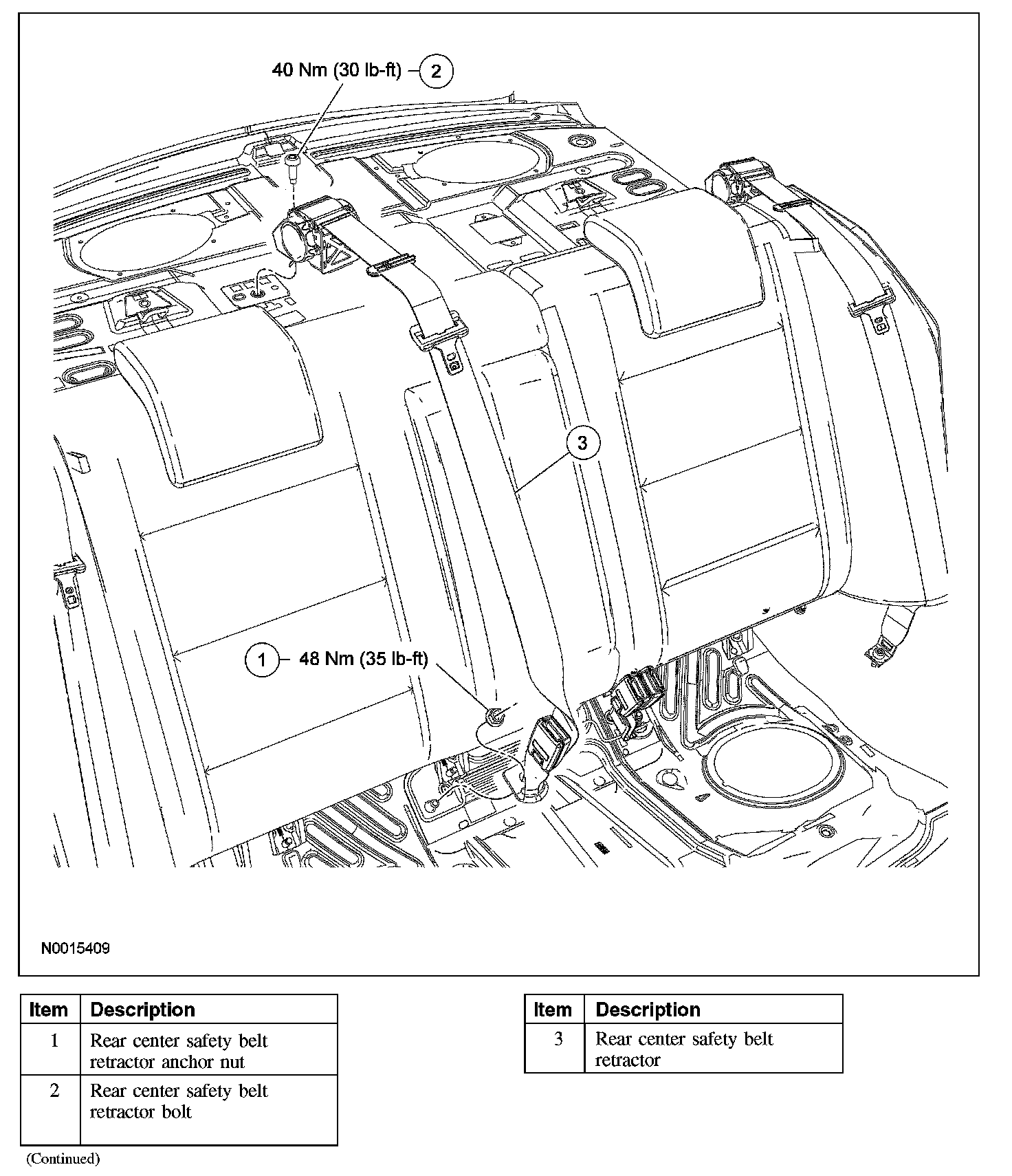 SAFETY BELT RETRACTOR - REAR, CENTERRemoval and Installation