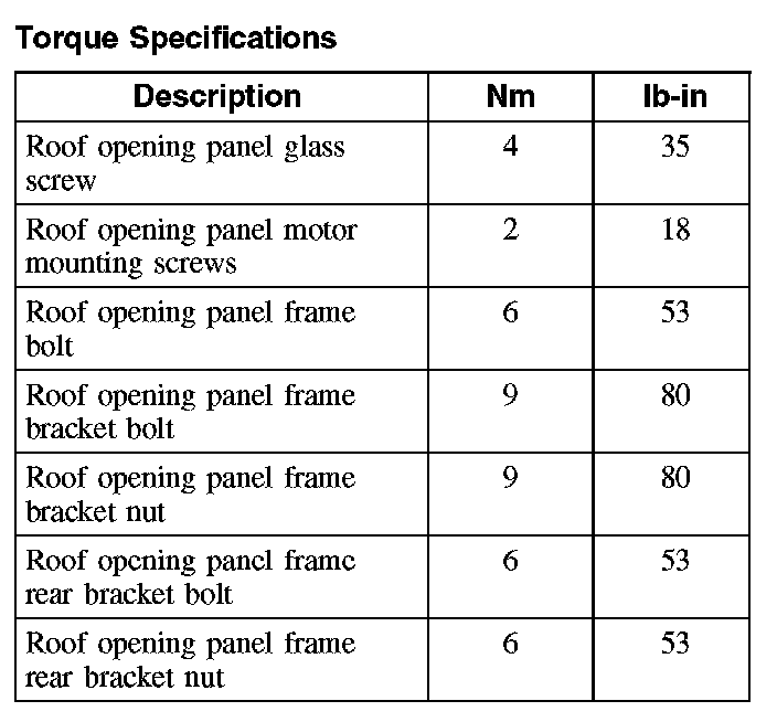 Torque Specifications: