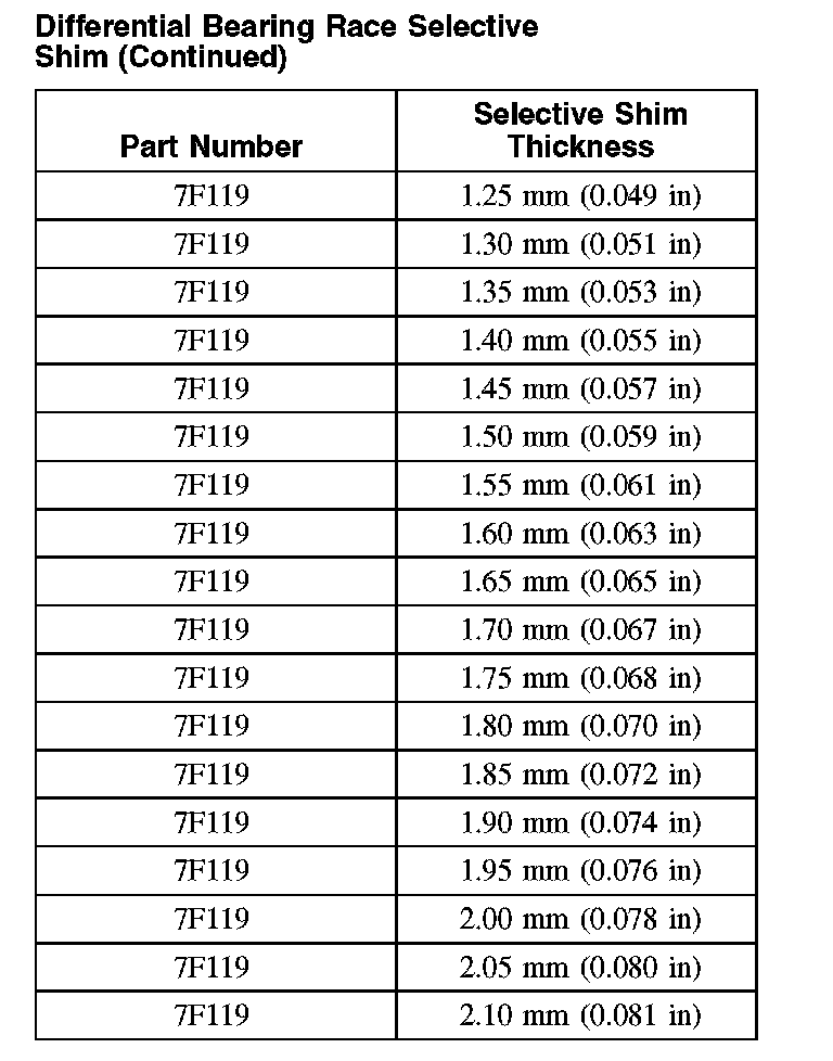 Differential Bearing Race Selective Shim: