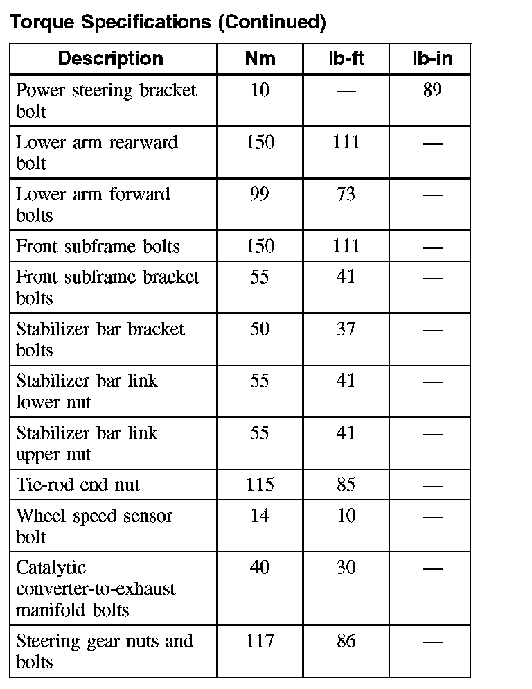 Torque Specifications: