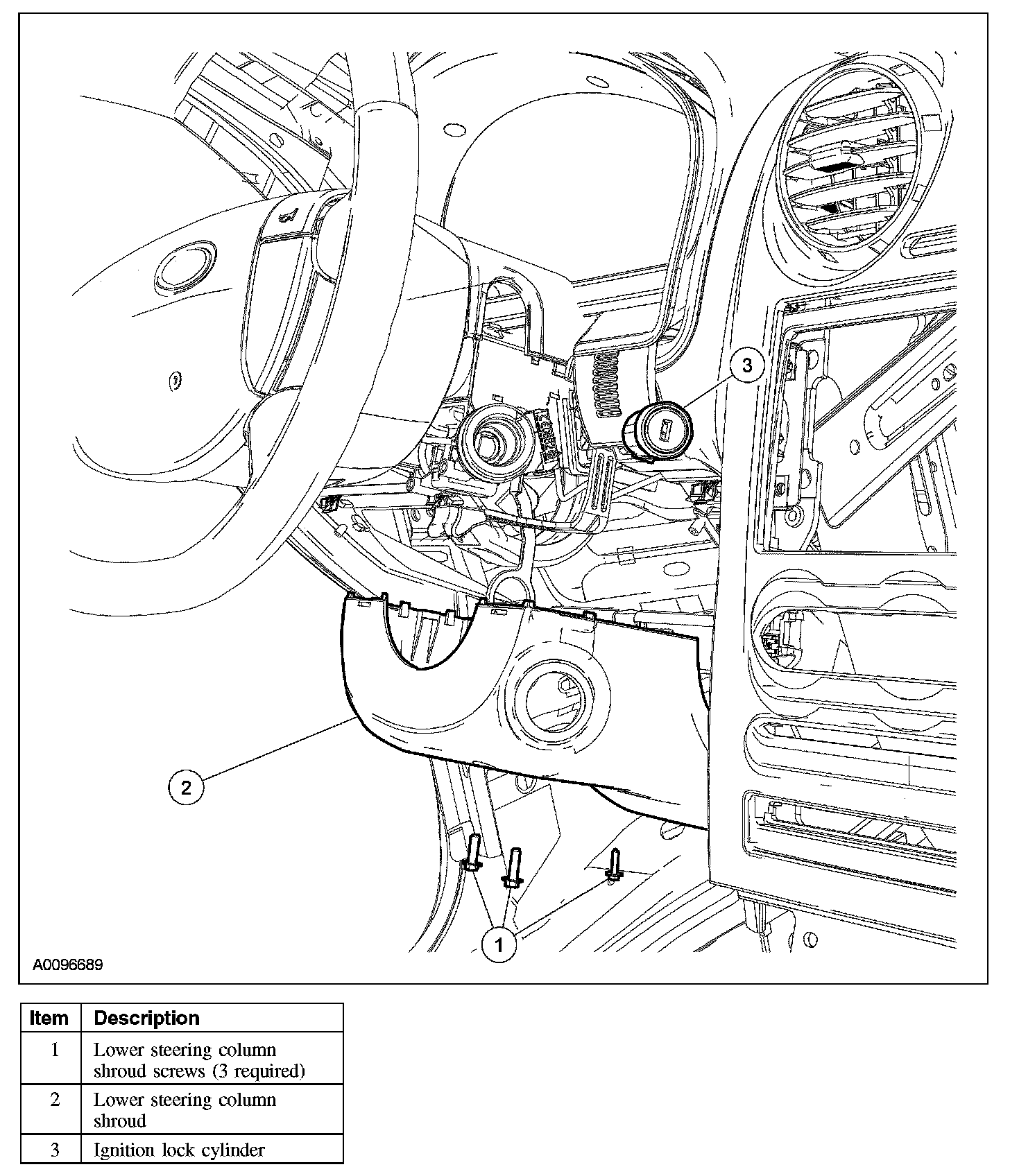 5. Using a suitable tool, press the release pin and remove the ignition cylinder.