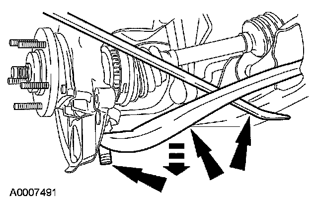 5. Remove the bolt and the wheel speed sensor from the wheel knuckle. Position the wheel speed sensor aside.