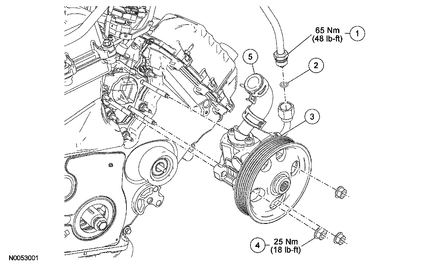 6. Disconnect the power steering pressure line fitting from the power steering pump.