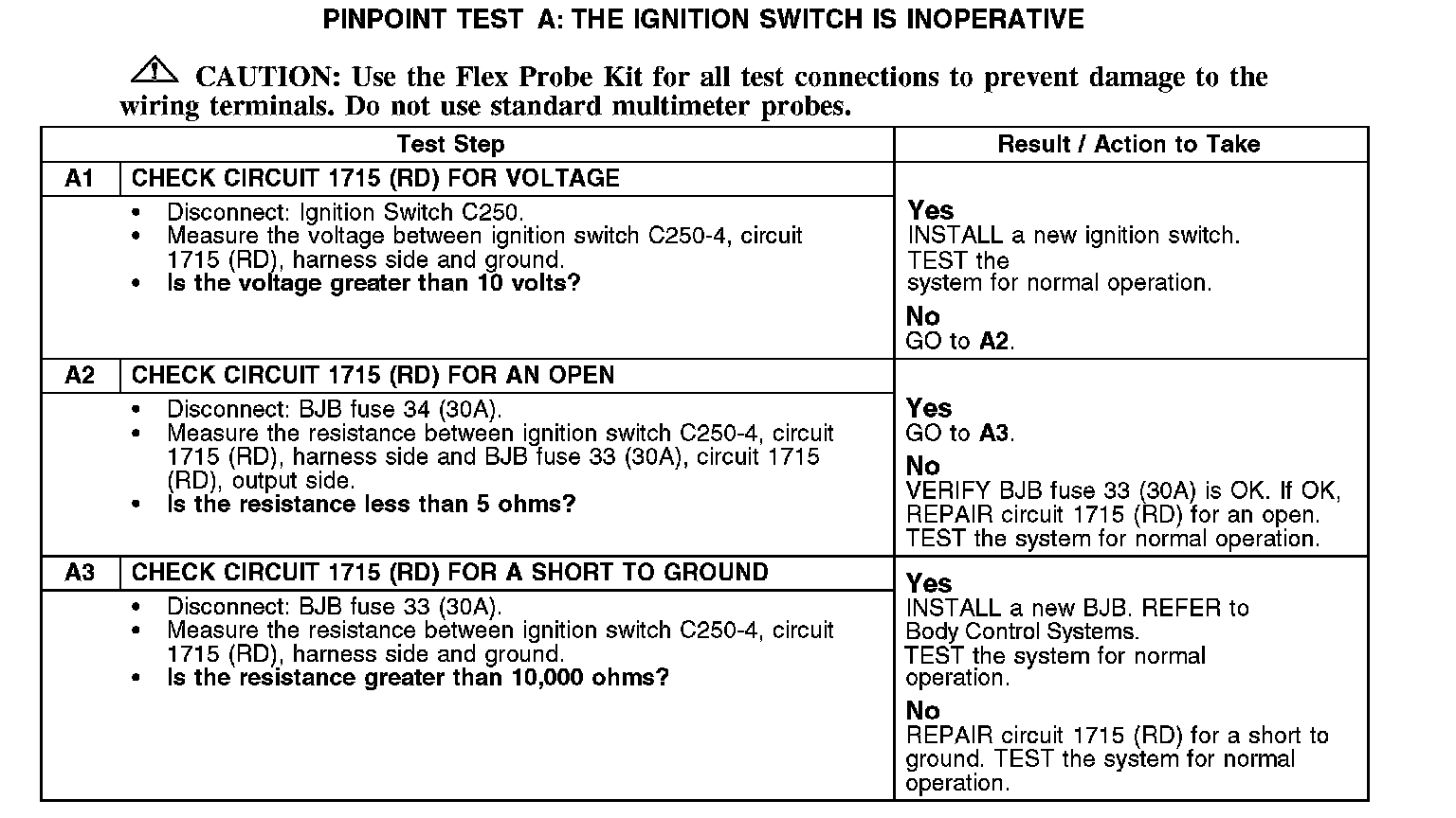 Pinpoint TestsTest A: The Ignition Switch Is Inoperative