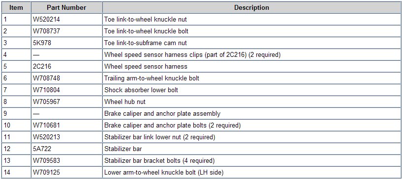 9. Remove and discard the LH trailing arm-to-knuckle bolt, then loosen the trailing arm-to-subframe bolt.