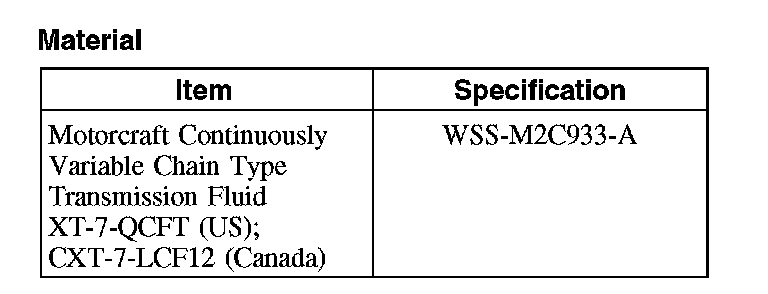 CAUTION: MERCON (R), MERCON (R) V, MERCON (R) SP, Motorcraft Premium Automatic Transmission Fluid and Motorcraft Continuously Variable Chain Type Transmission Fluid are not interchangeable transmission fluids. The use of any fluid other than what is recommended for this transmission will cause transmission damage.