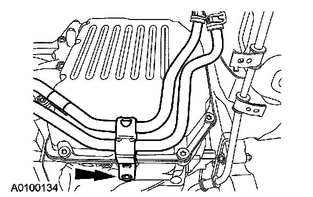 11. Disconnect the transmission fluid cooler tube bracket. Remove the fluid cooler tubes.