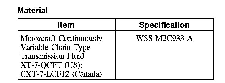CAUTION: MERCON (R), MERCON (R) V, MERCON (R) SP, Motorcraft Premium Automatic Transmission Fluid and Motorcraft Continuously Variable Chain Type Transmission Fluid are not interchangeable transmission fluids. The use of any fluid other than what is recommended for this transmission will cause transmission damage.