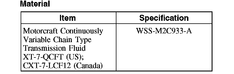 CAUTION: MERCON (R), MERCON (R) V, MERCON (R) SP, Motorcraft Premium Automatic Transmission Fluid and Motorcraft Continuously Variable Chain Type Transmission Fluid are not interchangeable transmission fluids. The use of any fluid other than what is recommended for this transmission will cause transmission damage.