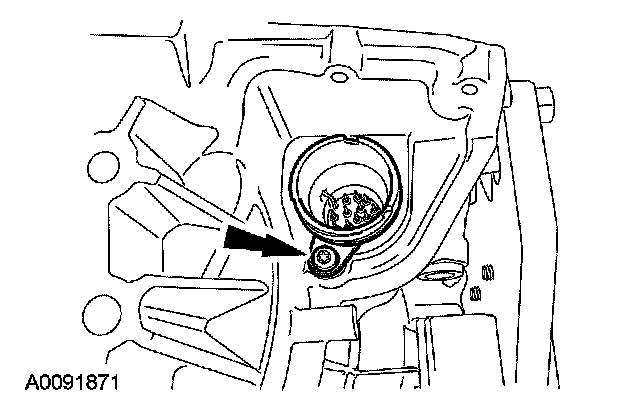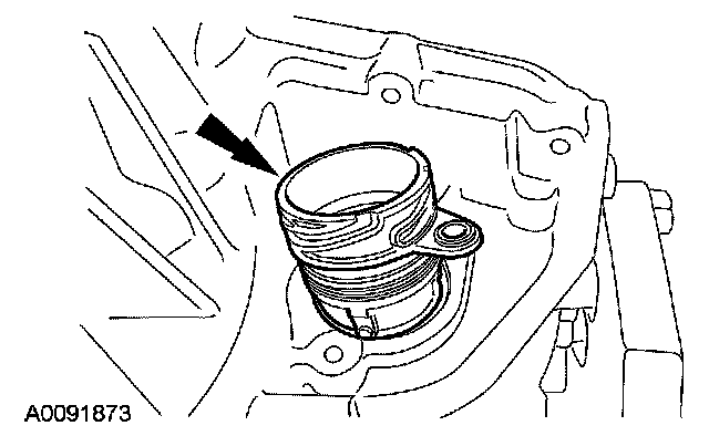 10. CAUTION: Make sure that the transmission fluid filter pickup tube seal was removed from the bore when the transmission fluid filter was removed. Failure to remove the seal prior to installing the new transmission fluid filter will result in transaxle failure.