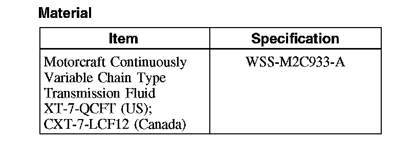 4. CAUTION: MERCON, MERCON V and MERCON SP, Motorcraft Premium Automatic Transmission Fluid and Motorcraft Continuously Variable Chain Type Transmission Fluid are not interchangeable transmission fluids. The use of any fluid other than what is recommended for this transmission will cause transmission damage.