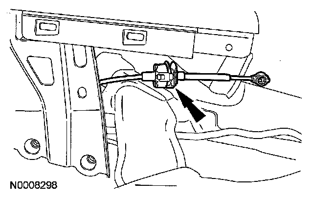 18. From inside of the vehicle, pull the selector lever cable through the bulkhead and remove from the vehicle.