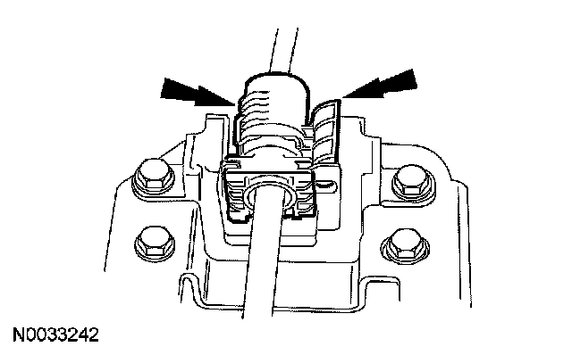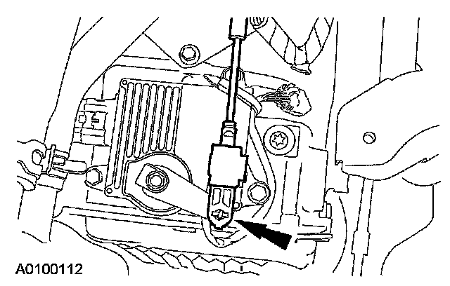 12. CAUTION: Do not force the selector lever cable end onto the manual control lever, damage to the lever will occur.