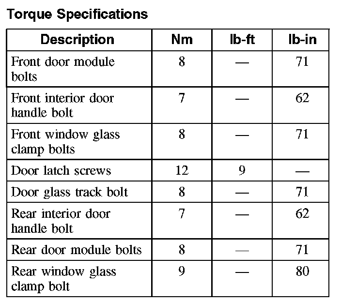 Torque Specifications: