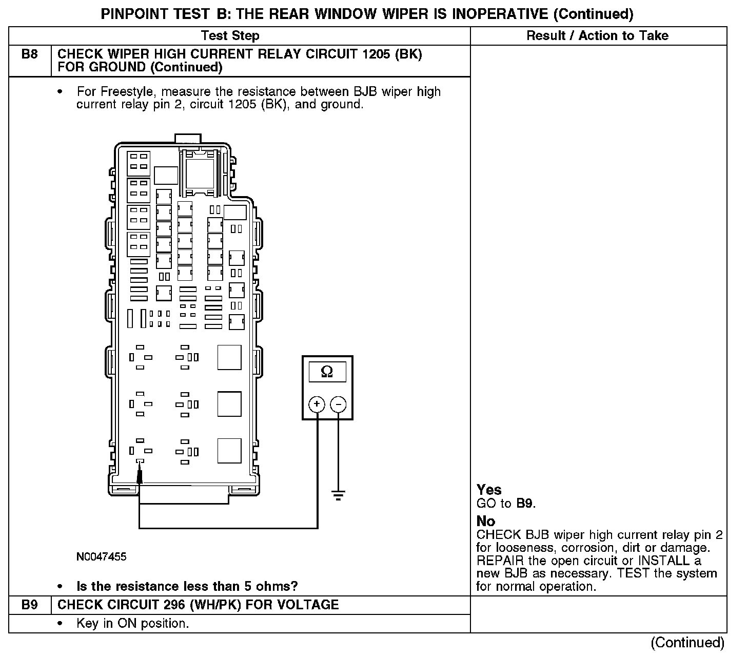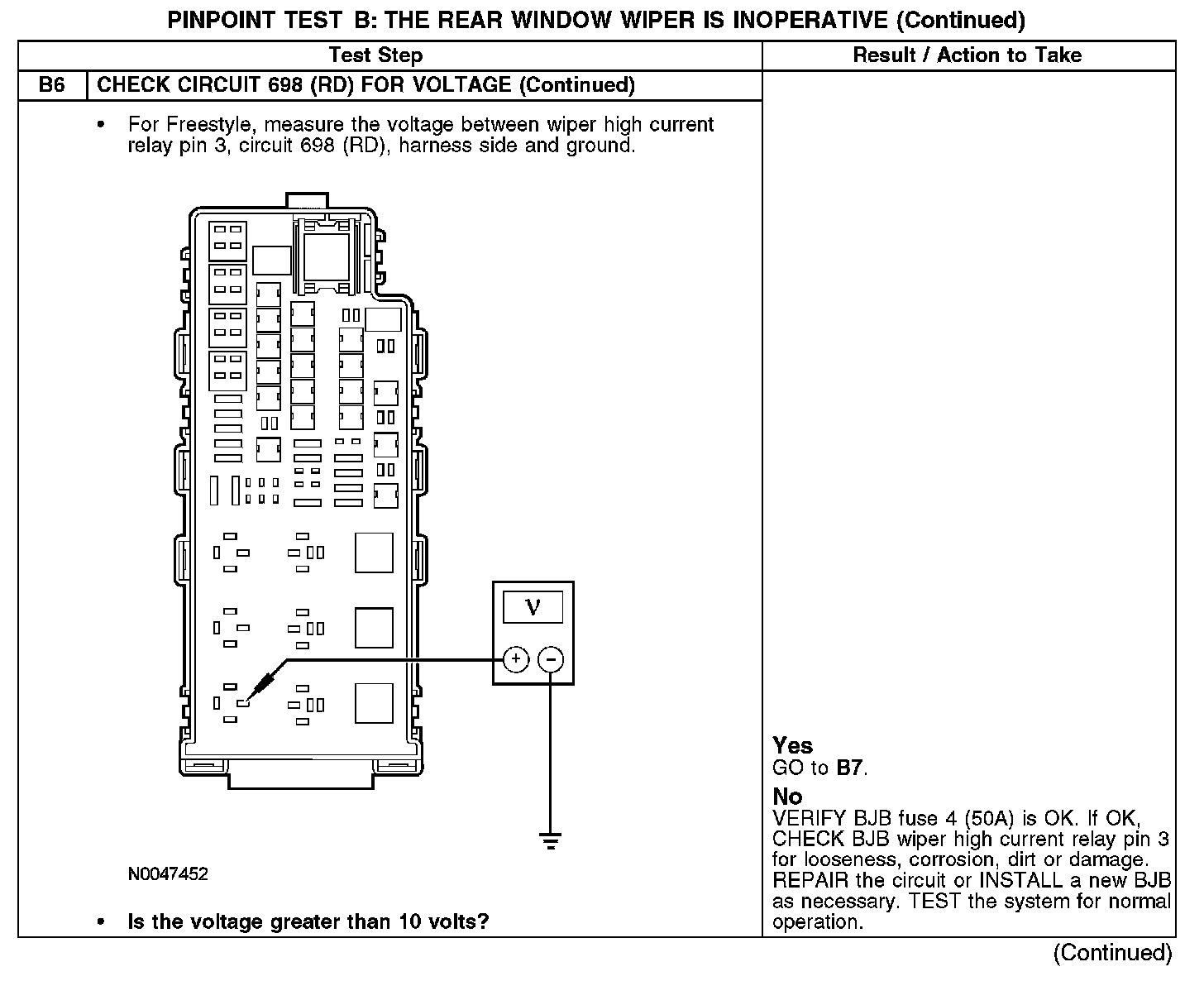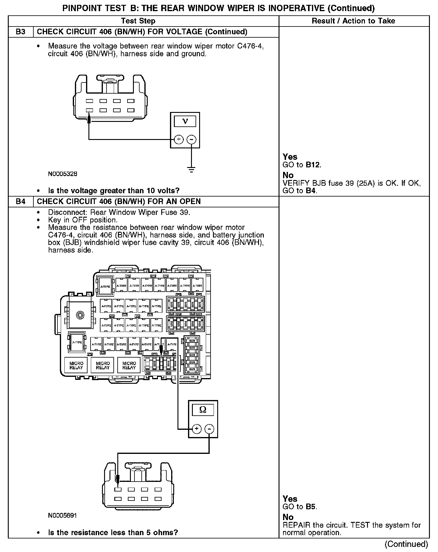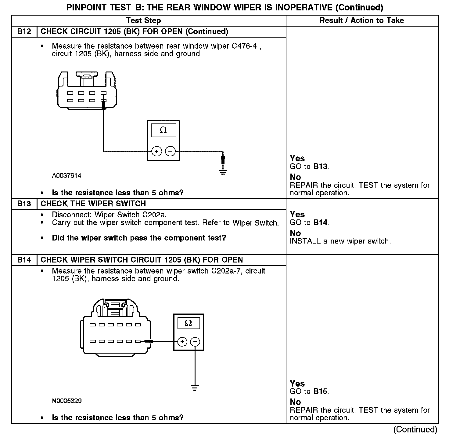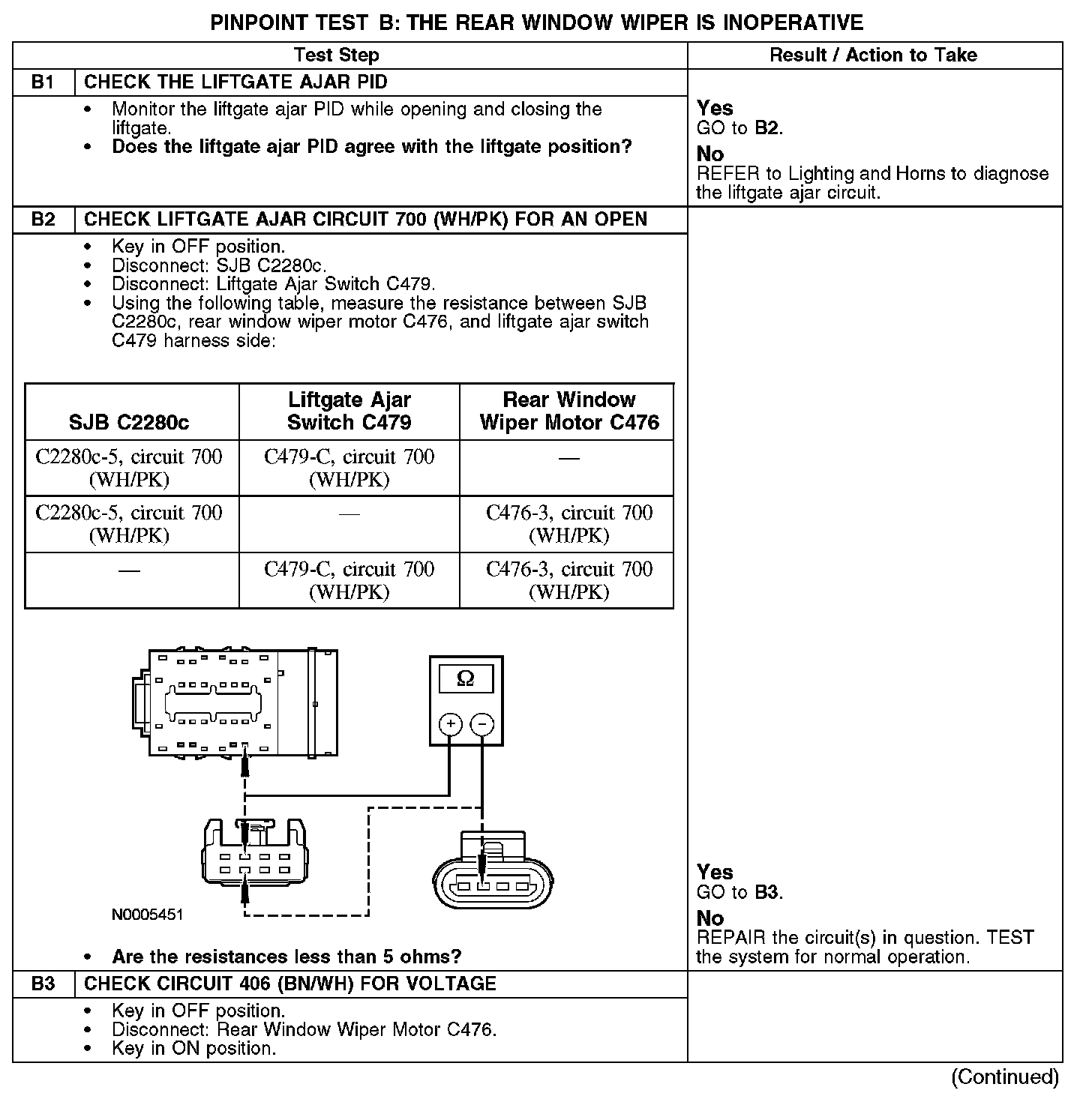 PINPOINT TEST B: THE REAR WINDOW WIPER IS INOPERATIVEB1-B3: