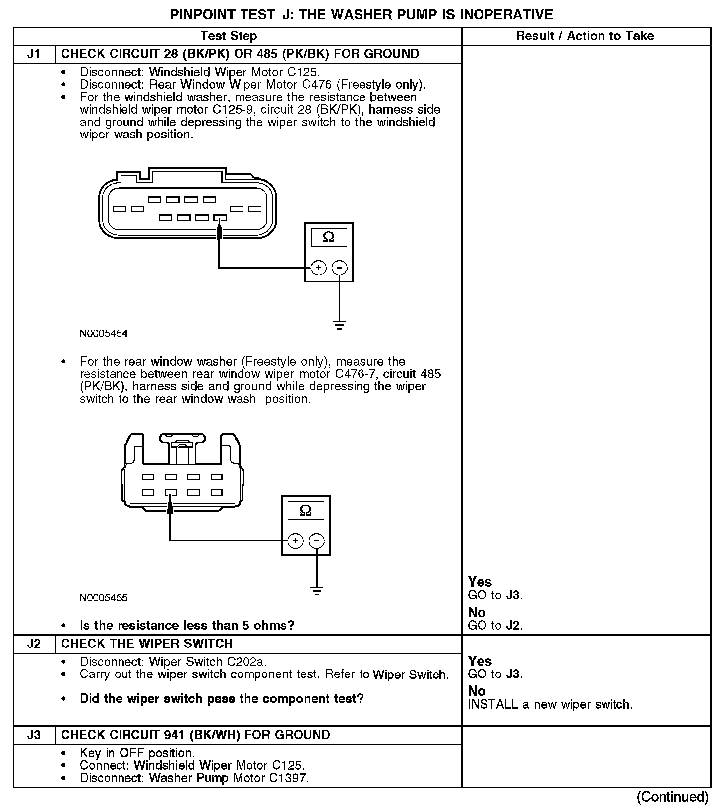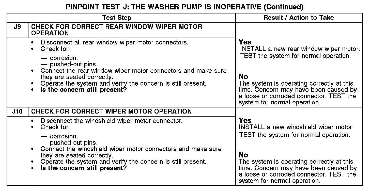 PINPOINT TEST J: THE WASHER PUMP IS INOPERATIVEJ1-J3: