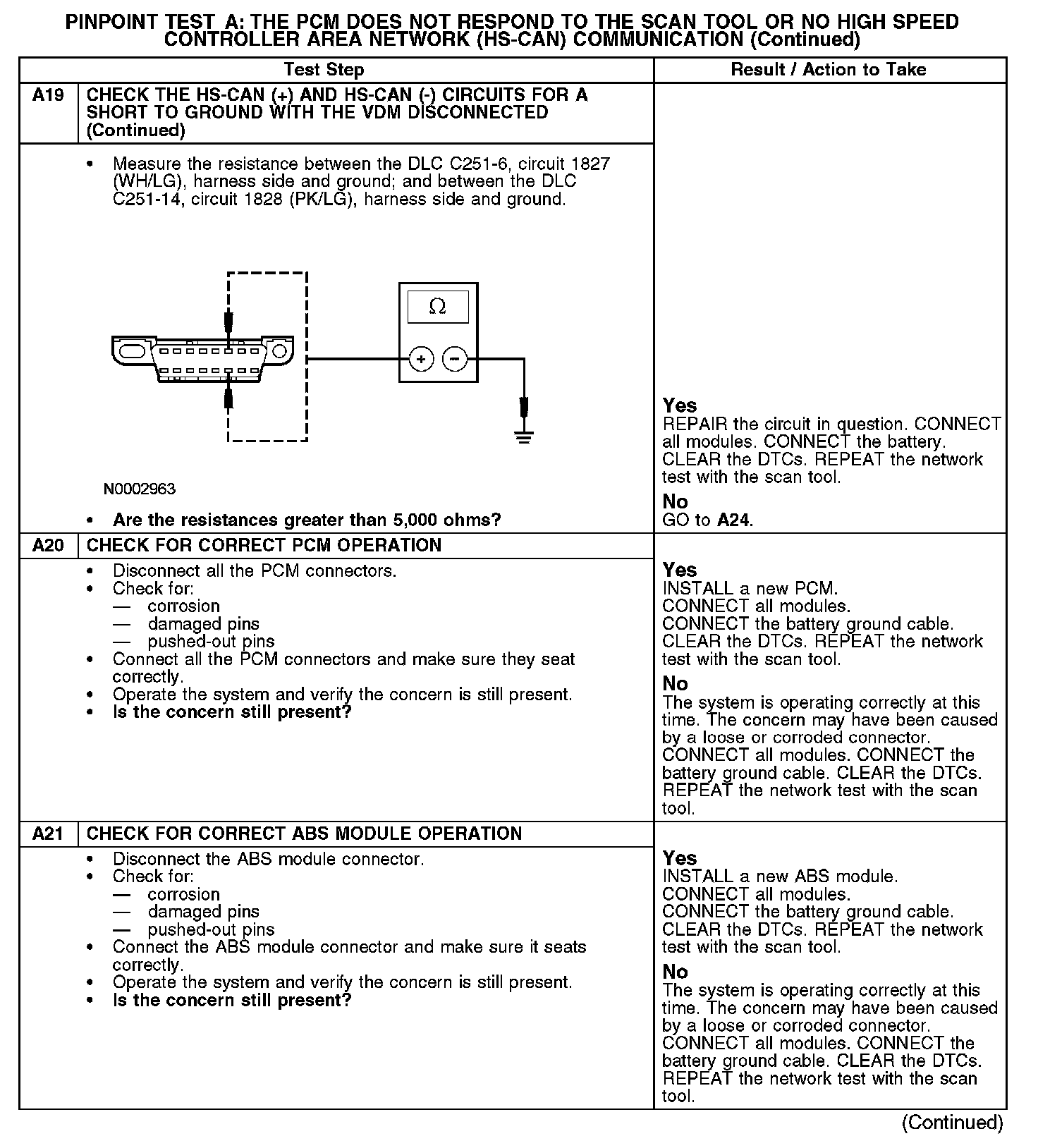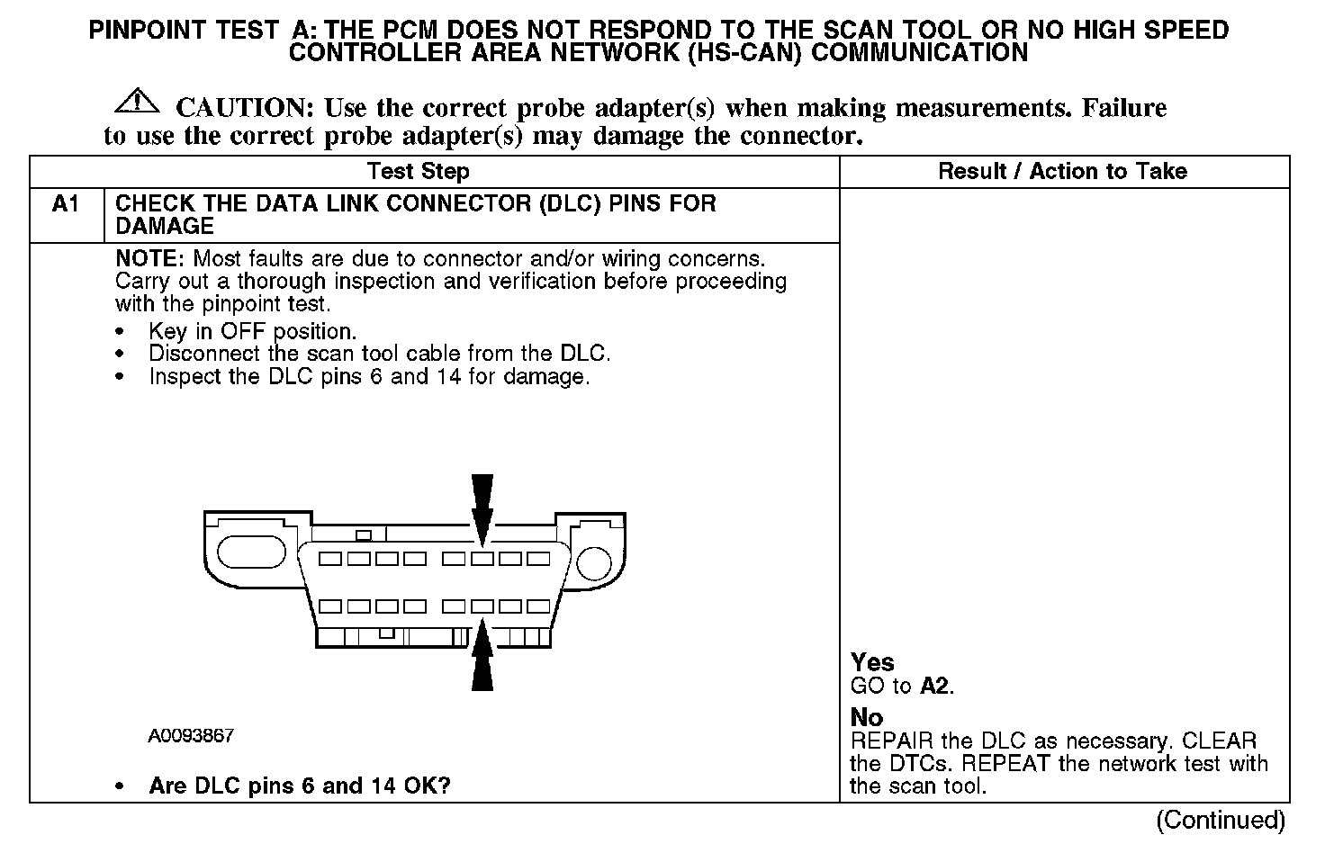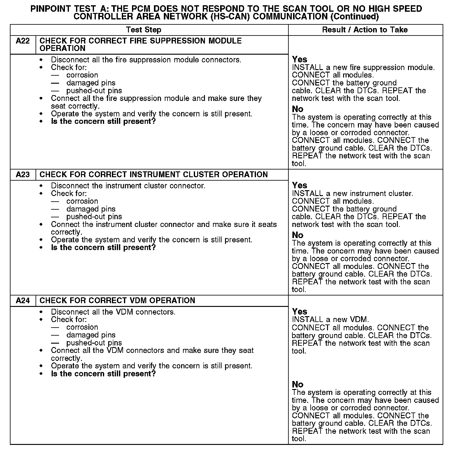 Test A: The PCM Does Not Respond To The Scan Tool, Or No High Speed Controller Area Network (HS-CAN) Communication