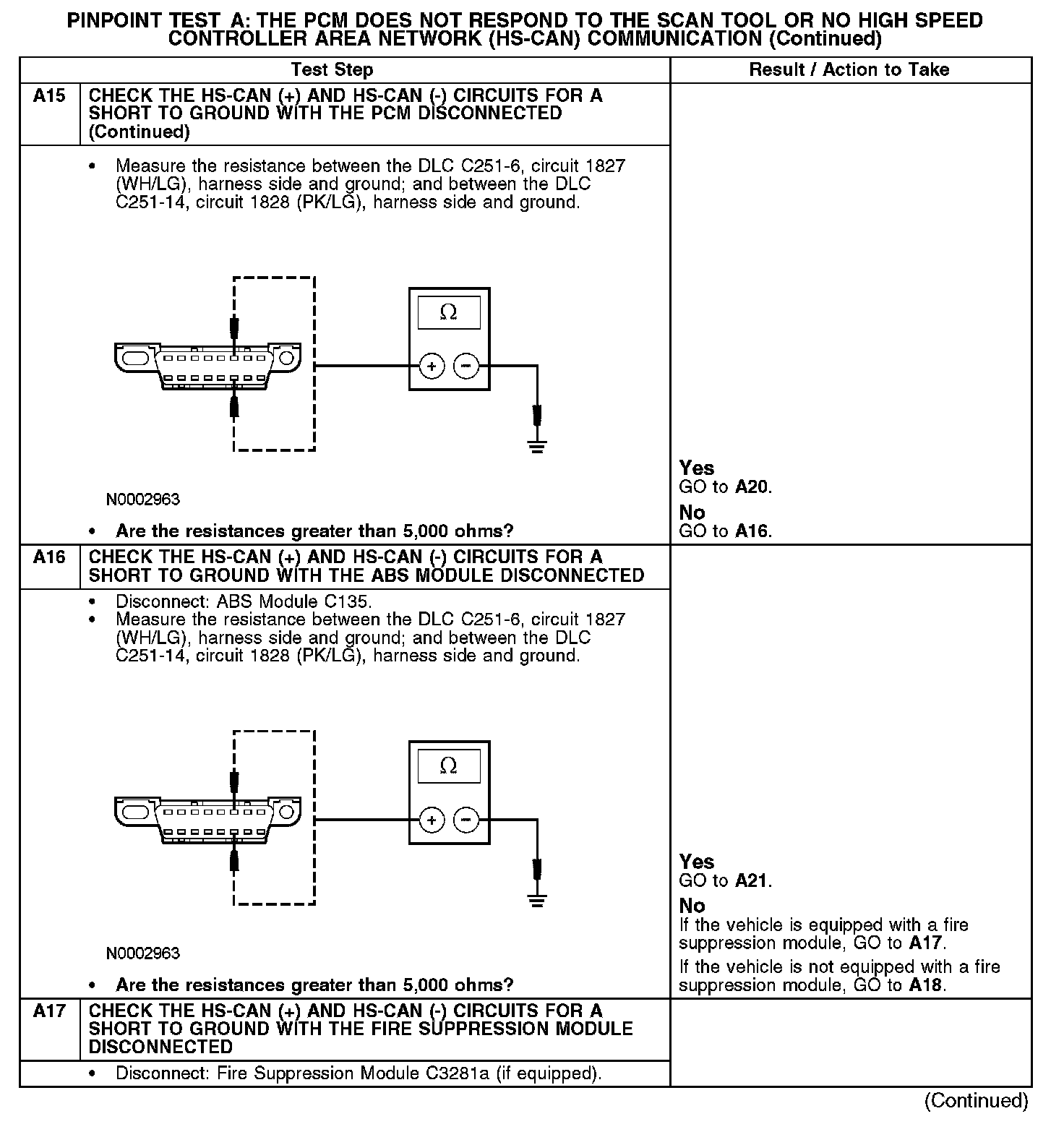 PINPOINT TEST A: THE PCM DOES NOT RESPOND TO THE SCAN TOOL, OR NO HIGH SPEED CONTROLLER AREA NETWORK (HS-CAN) COMMUNICATIONNormal Operation