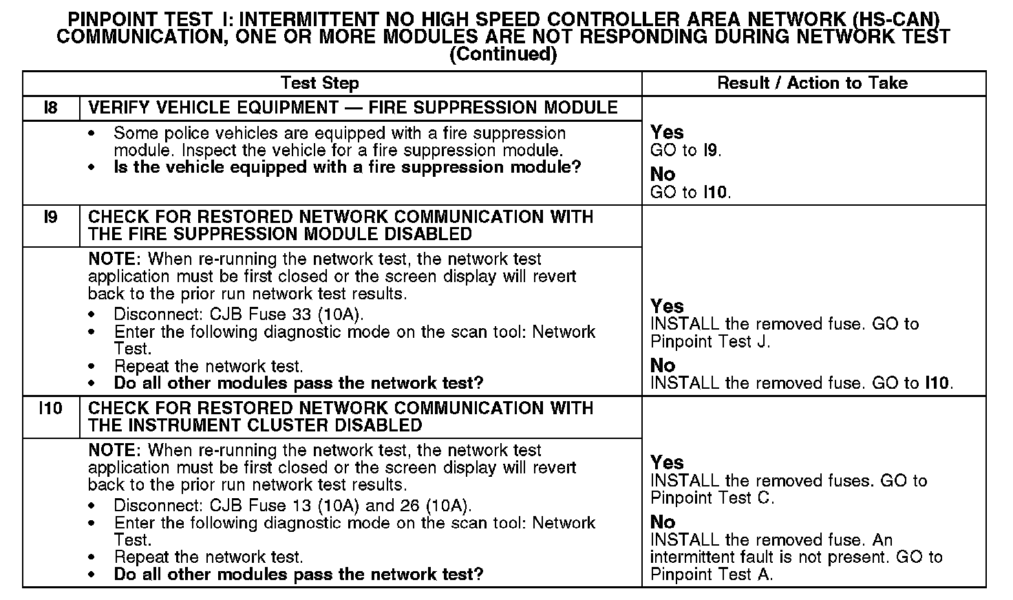 Test I: Intermittent No High Speed Controller Area Network (HS-CAN) Communication, One or More Modules Are Not Respond
