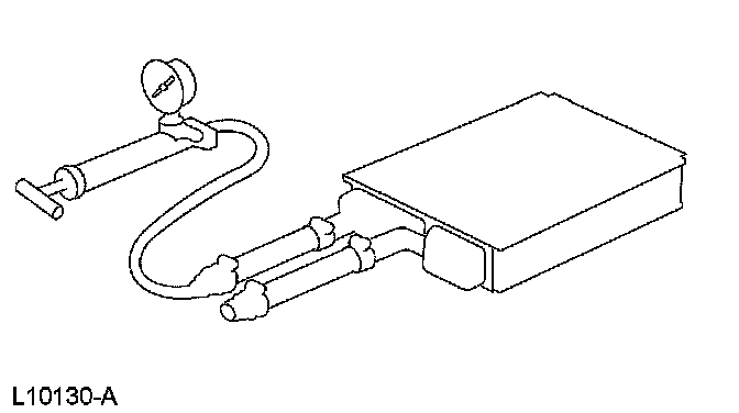 8. If the pressure drops, check the heater hose connections to the core tubes for leaks. If the heater hoses do not leak, remove the heater core from the vehicle and carry out the bench test.