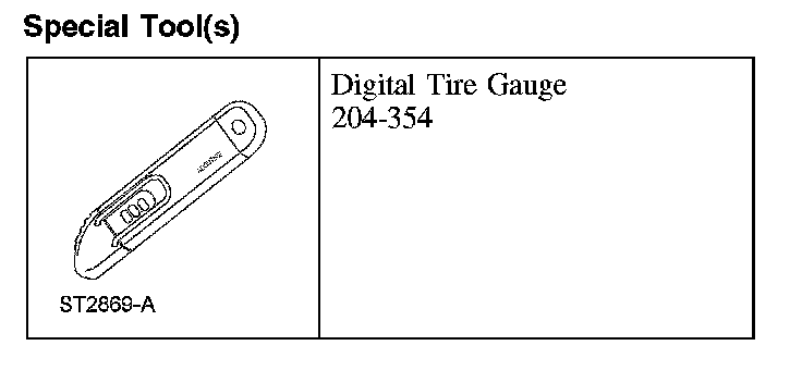 4. NOTE: Use only special tool 204-354 any time tire pressures are measured to make sure that accurate values are obtained.