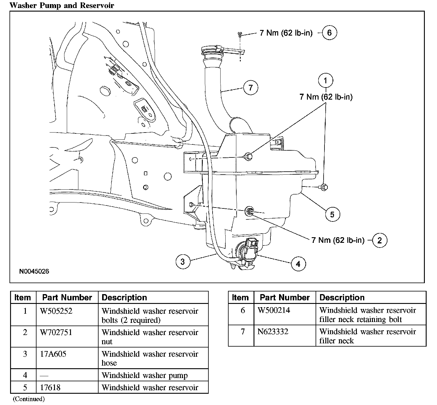 4. CAUTION: Do not operate the windshield washer pump prior to filling the windshield washer reservoir. Failure to follow these instructions may result in premature pump failure.