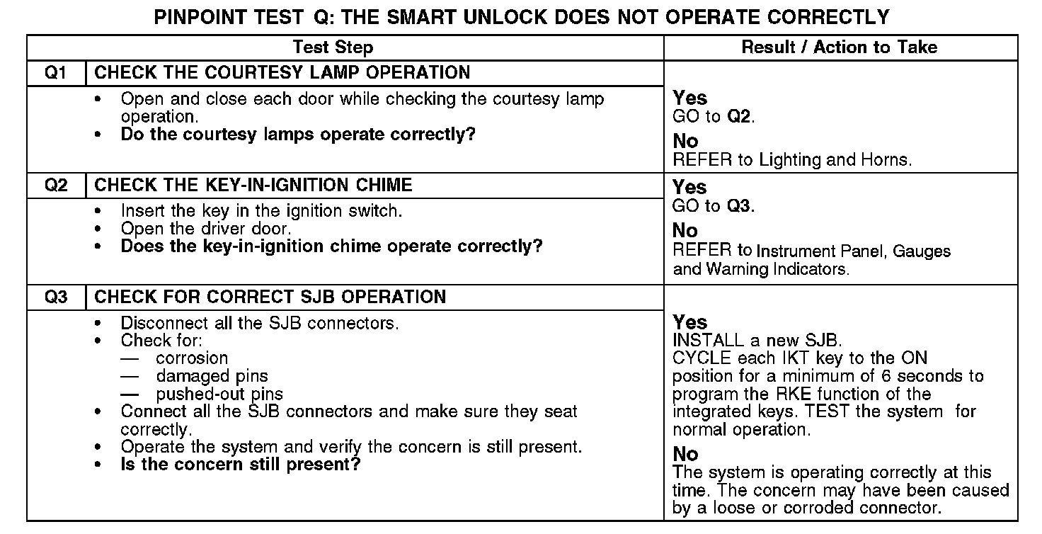 PINPOINT TEST Q: THE SMART UNLOCK DOES NOT OPERATE CORRECTLYNormal Operation