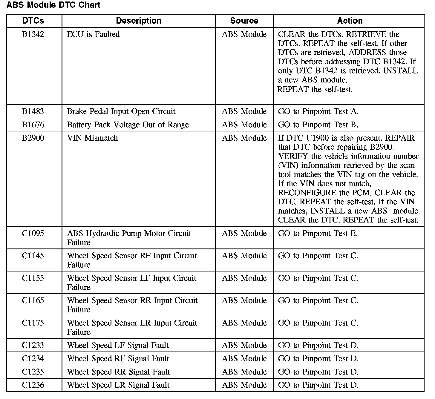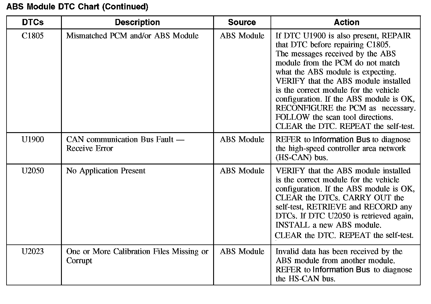 ABS Module DTC Chart