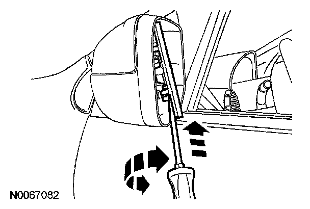 - Insert a flat-blade screwdriver between the upper outboard retaining tab and the exterior mirror glass backing plate.