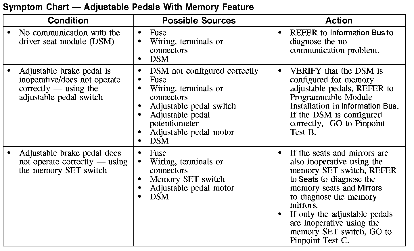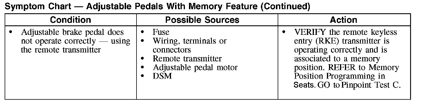 Symptom Chart - Adjustable Pedals With Memory Feature (Part 1):