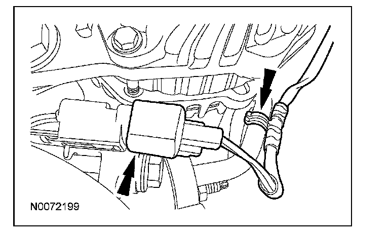 ^ Attach the A/C compressor wiring harness retainer.