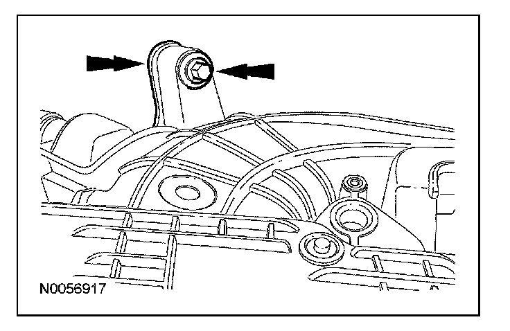 132. If equipped, install the upper intake manifold long support bracket and the 2 bolts (1 shown).