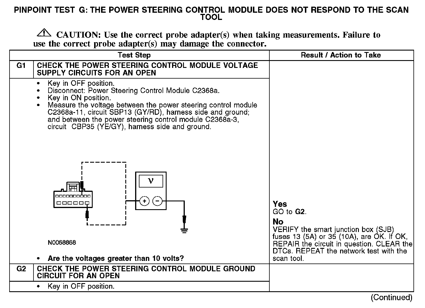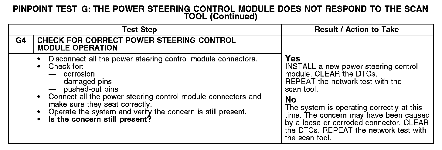 Test G: The Power Steering Control Module Does Not Respond To The Scan Tool