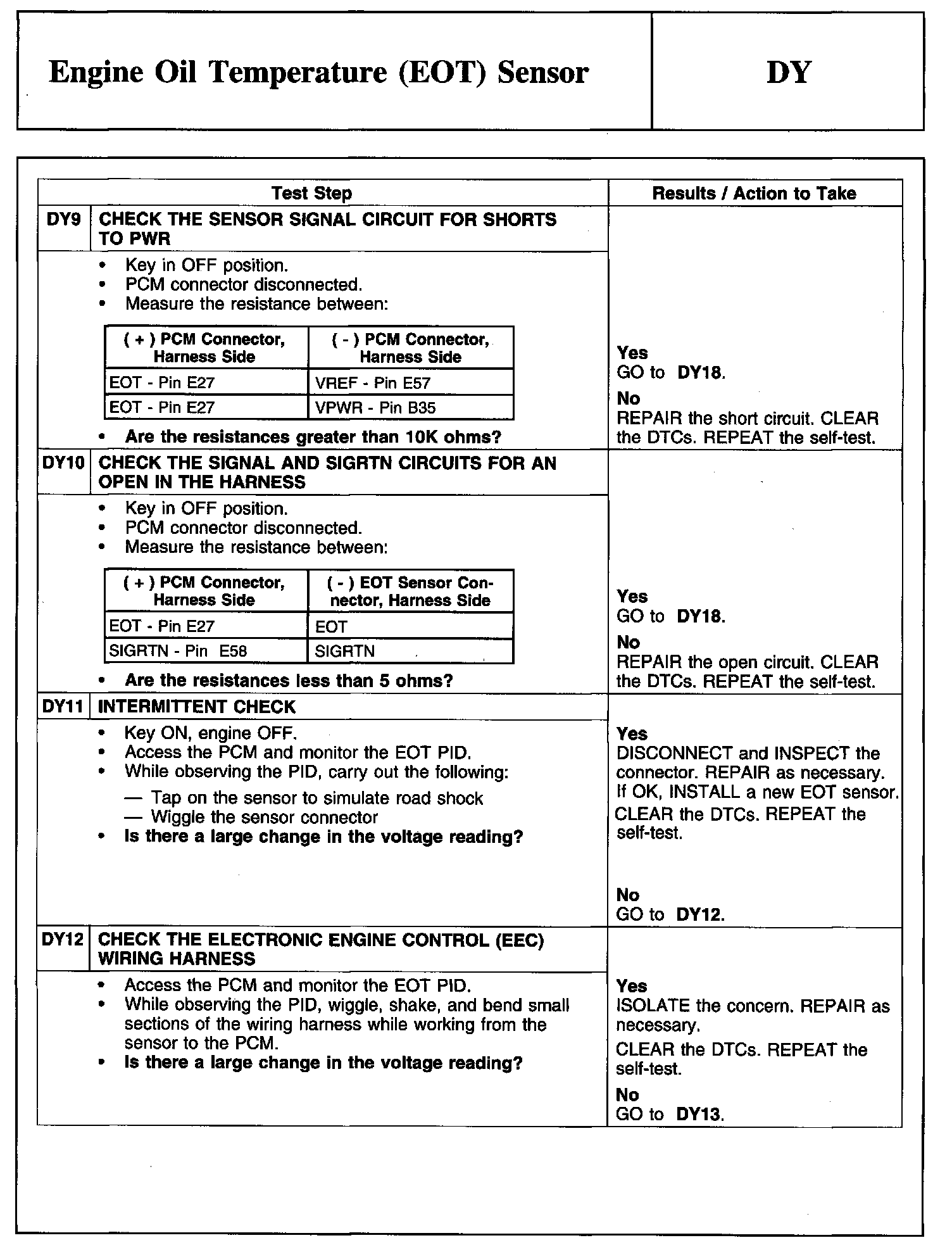 Tests DY: Engine Oil Temperature (EOT) Sensor