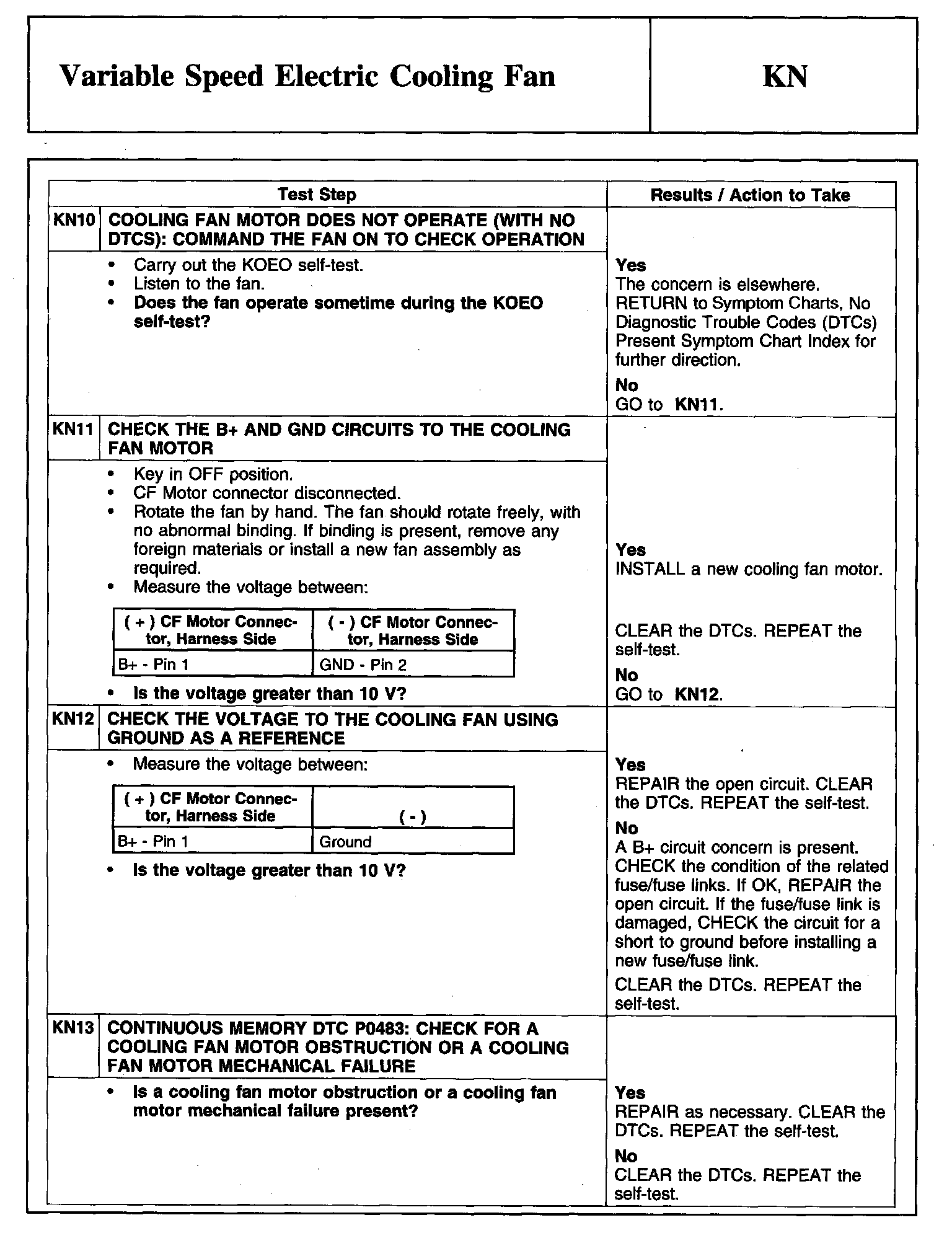 PINPOINT TEST KN: VARIABLE SPEED ELECTRIC COOLING FAN