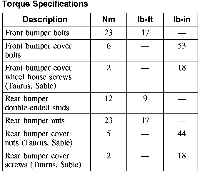 Torque Specifications: