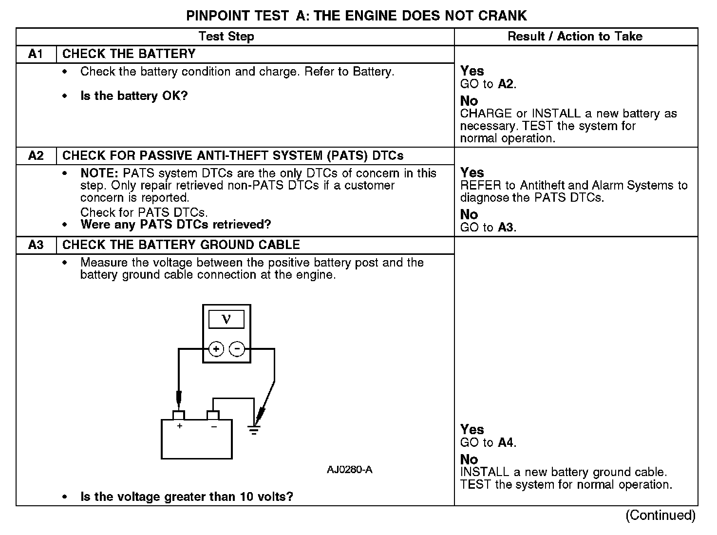 PINPOINT TEST A: THE ENGINE DOES NOT CRANK