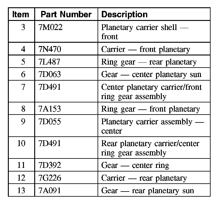 The front planetary ring gear is splined to the center planetary carrier and transfers power from the center planetary gearset to the front planetary gearset in 1st, 2nd, 3rd and 4th gear.