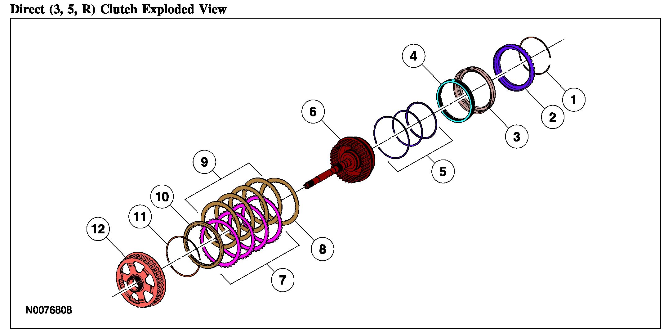 Direct (3, 5, R) Clutch Exploded View