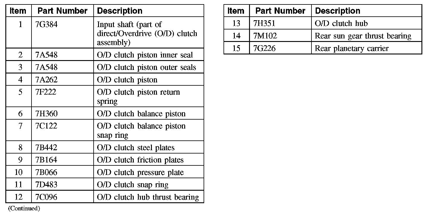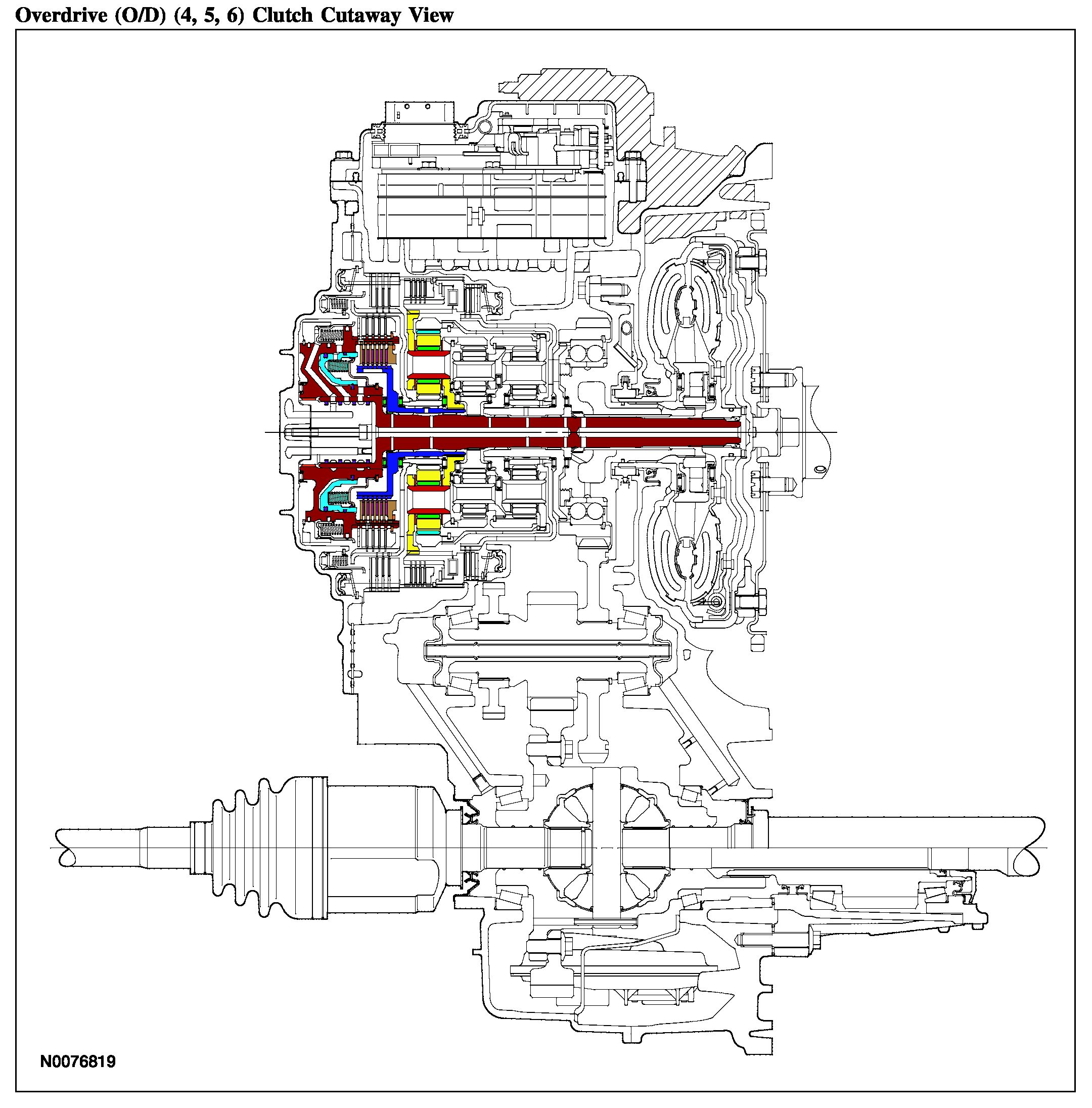 The O/D clutch is a drive clutch that transfers power from the direct/O/D hub and shaft assembly to the rear planetary carrier. The O/D clutch is applied in 4th, 5th and 6th gear.