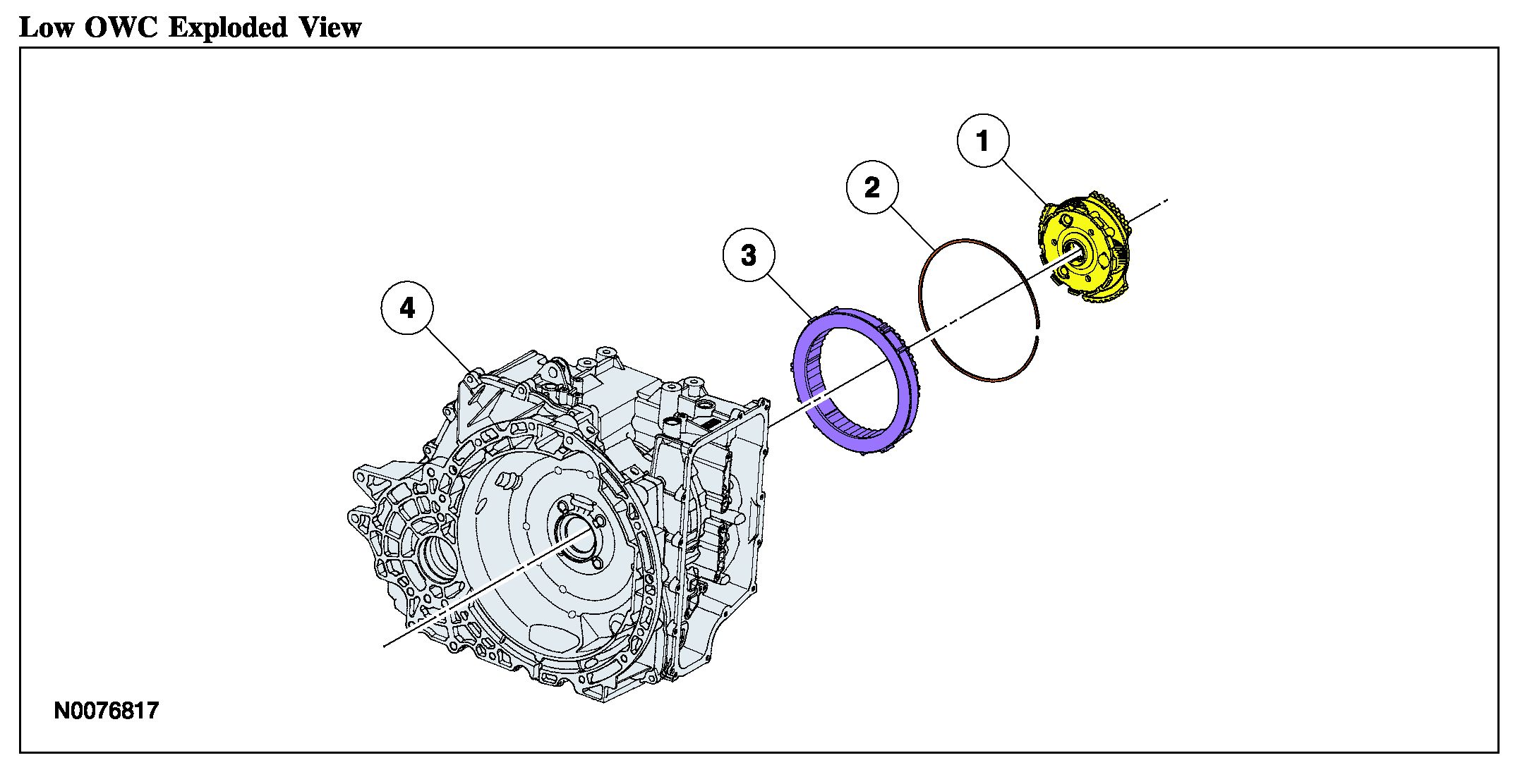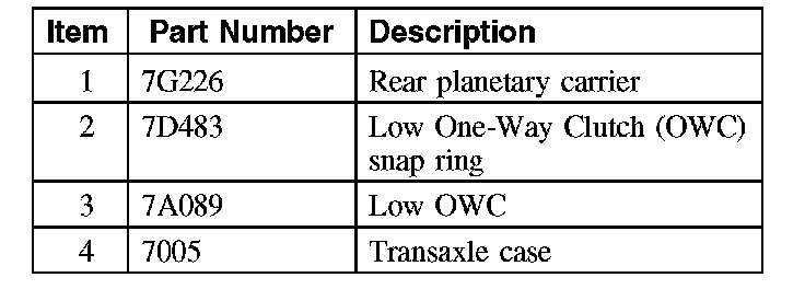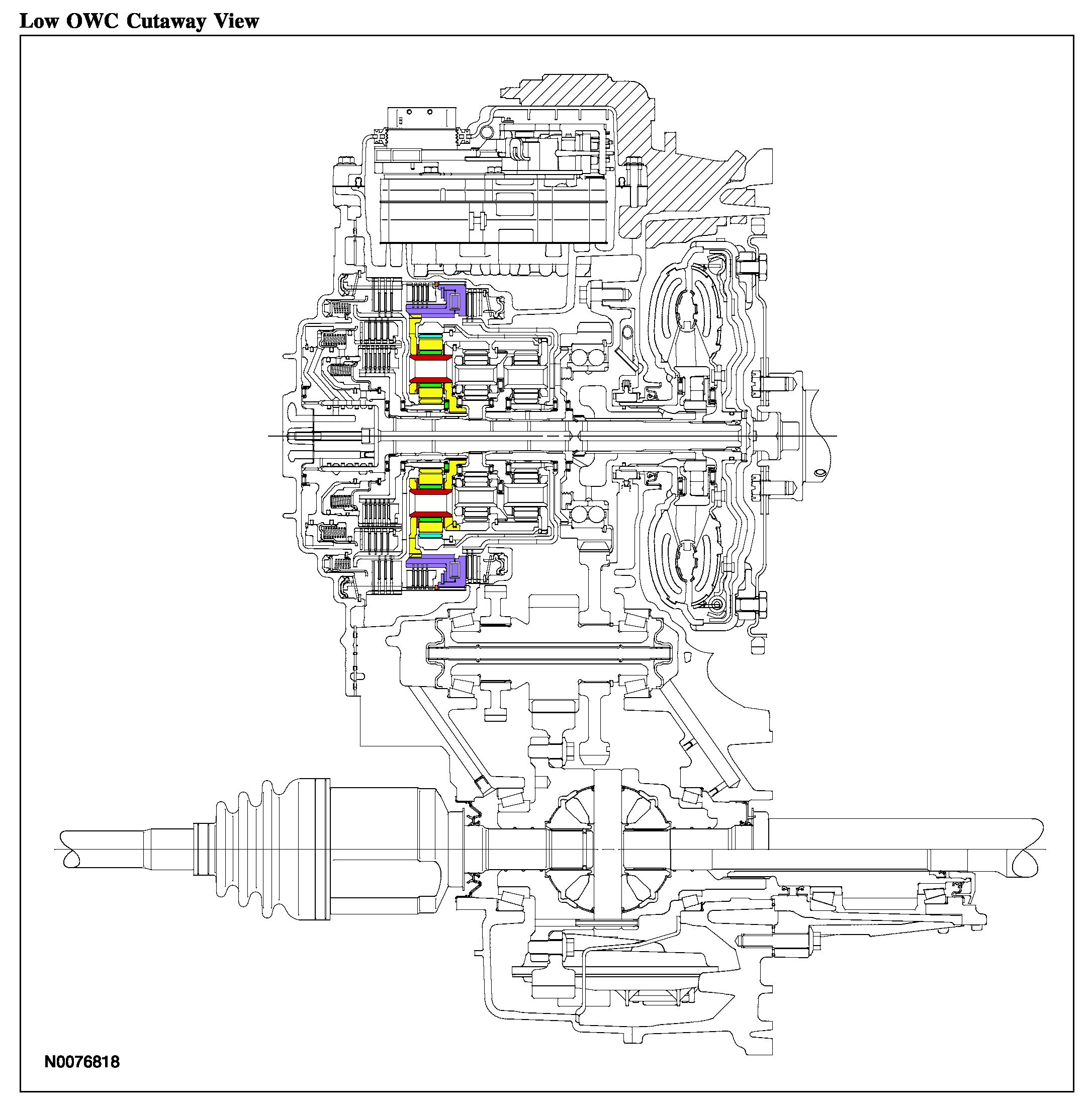 The low OWC is a brake clutch that holds the rear planetary carrier in one direction and allows it to freewheel in the opposite direction which eliminates engine braking in 1st gear when the transaxle is in DRIVE. The low OWC is used in 1st gear when the transaxle is in DRIVE.