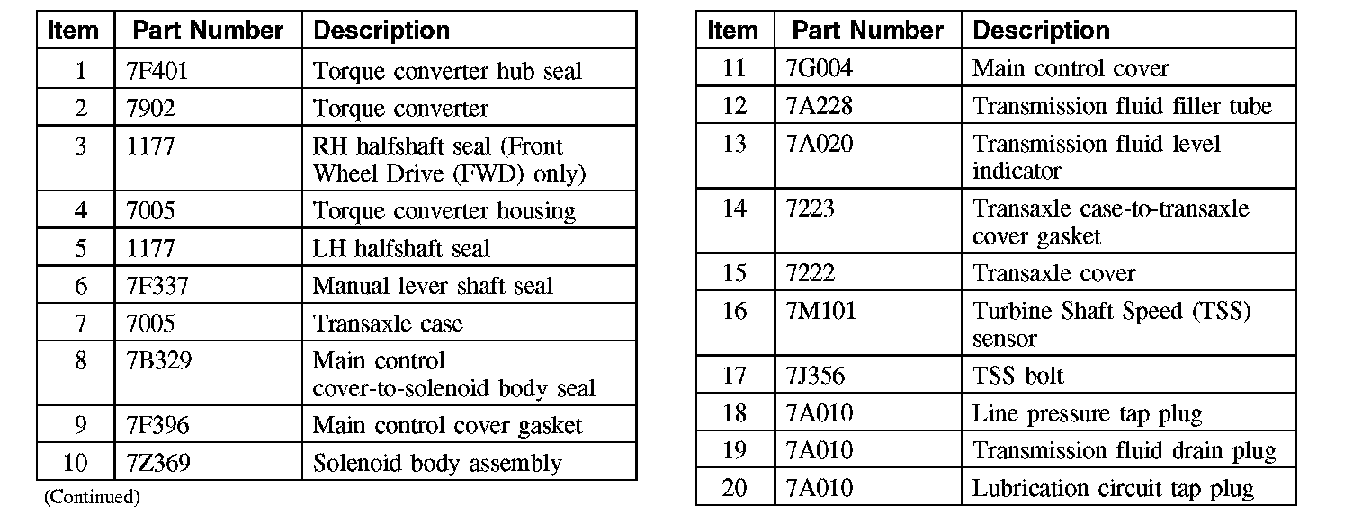 The torque converter housing has a lip-type seal that seals the torque converter hub. The manual lever shaft and halfshafts also use lip-type seals. AWD vehicles do not use a RH halfshaft seal, the transaxle is sealed by the PTU on the RH side.