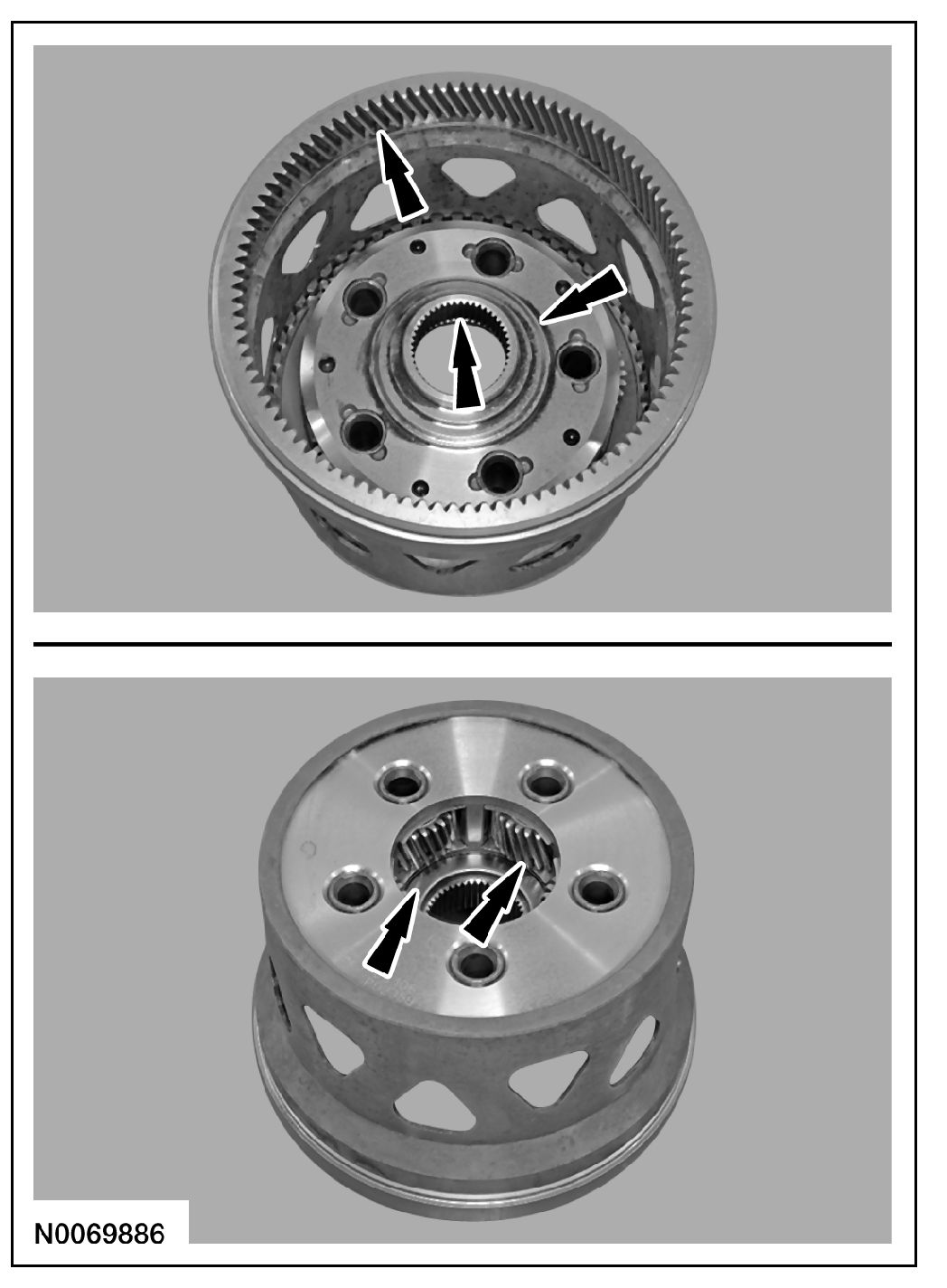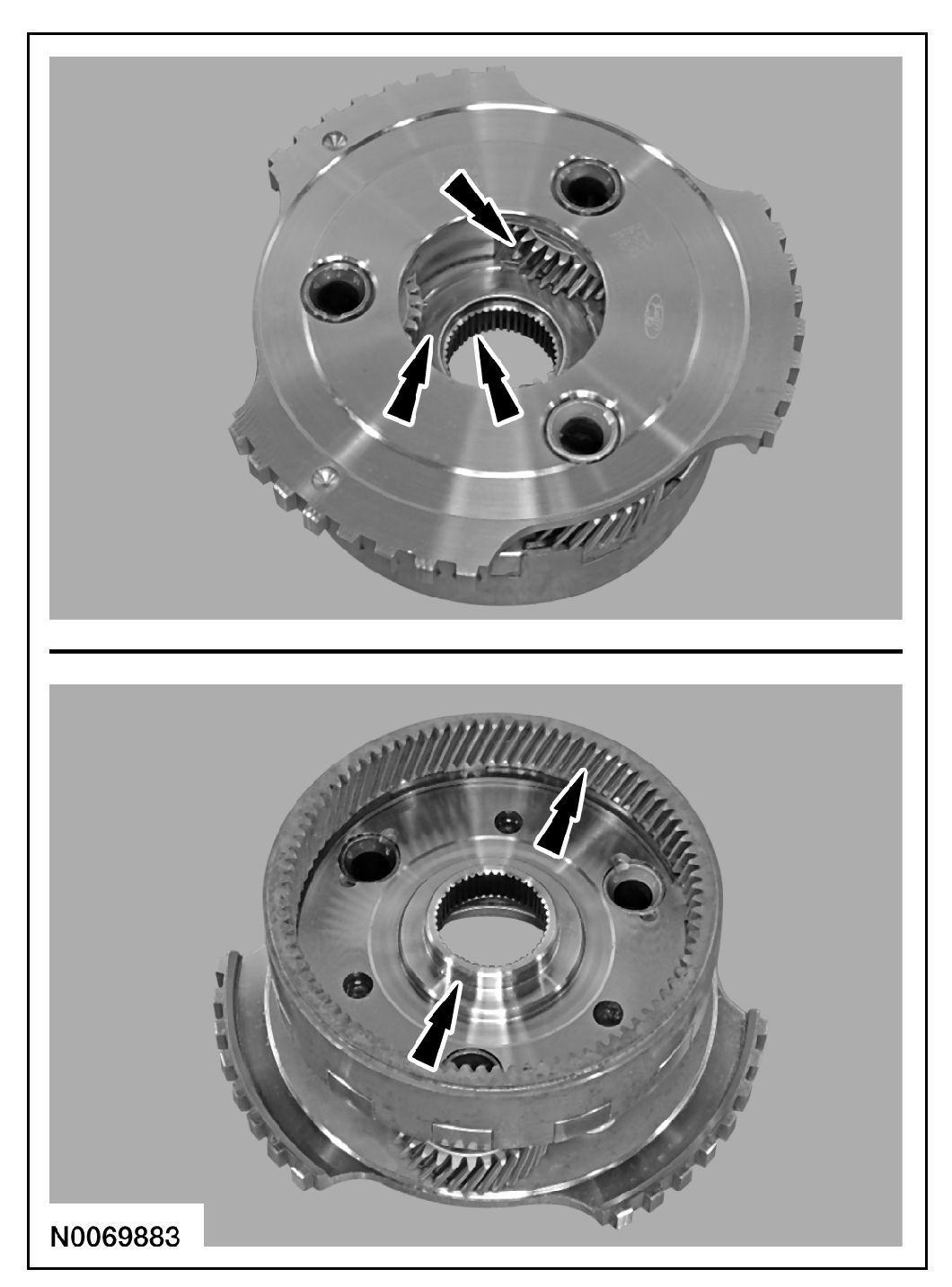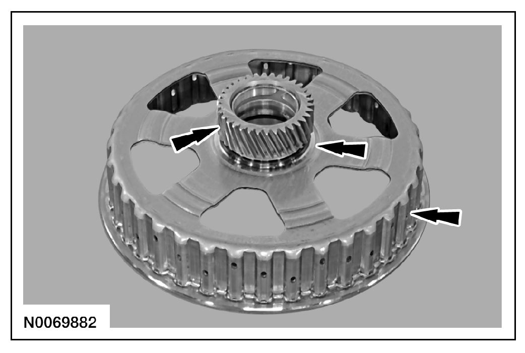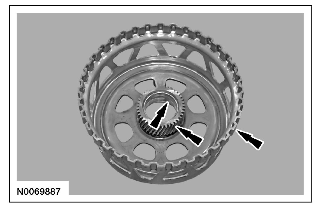 6. Clean and inspect the front planetary sun gear and shell assembly for damage or wear and install new, if necessary.