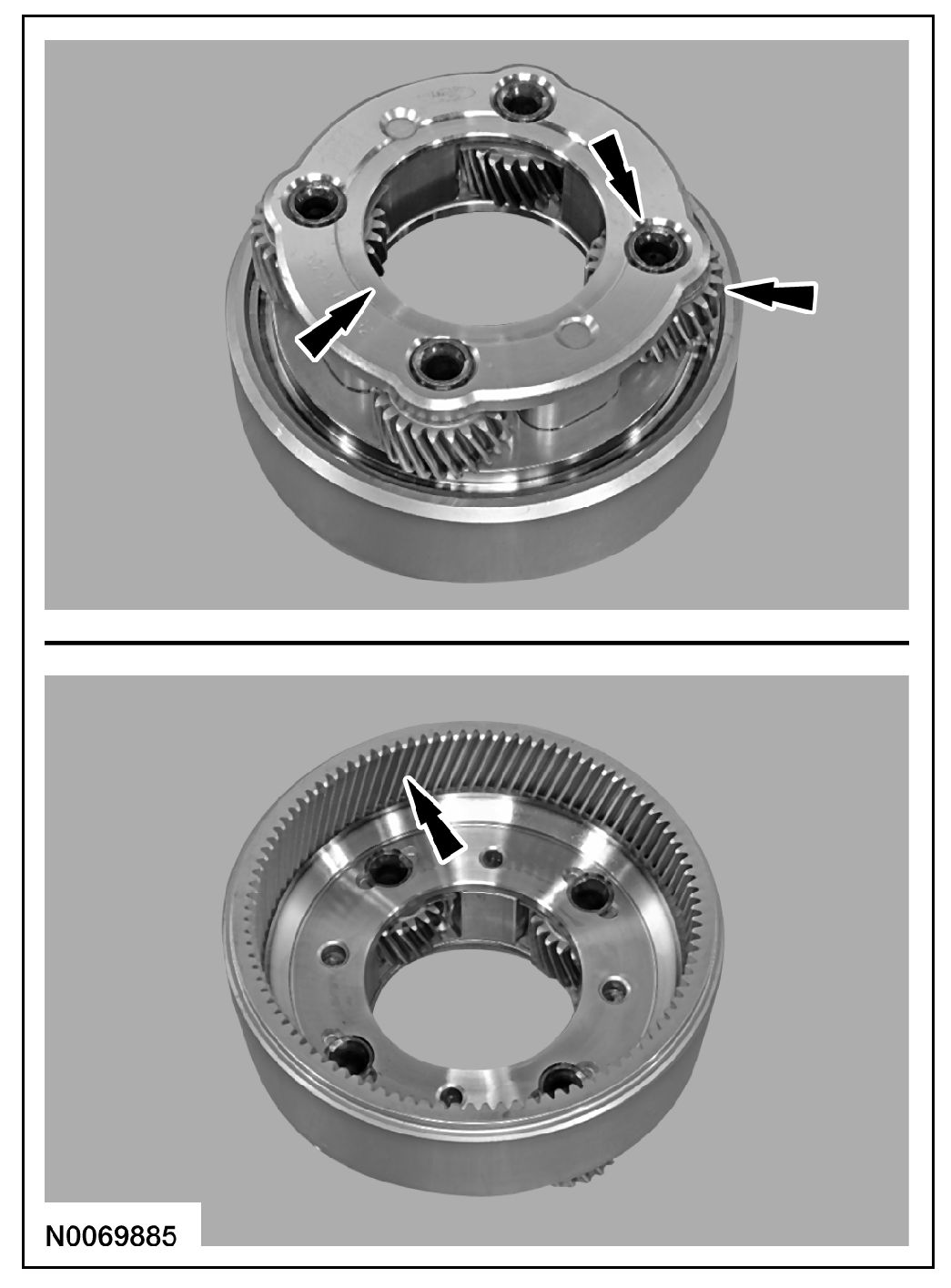 1. Clean and inspect the rear planetary sun gear and shell assembly for damage or wear and install new, as necessary.