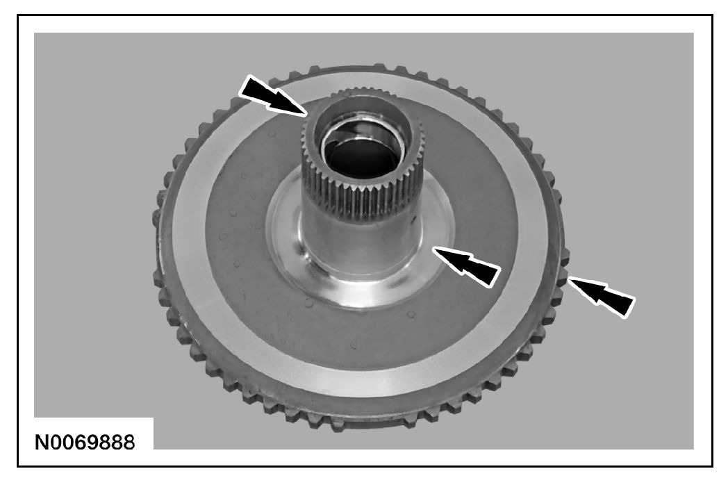 7. Clean and inspect the front planetary carrier hub for damage or wear and install new, if necessary.