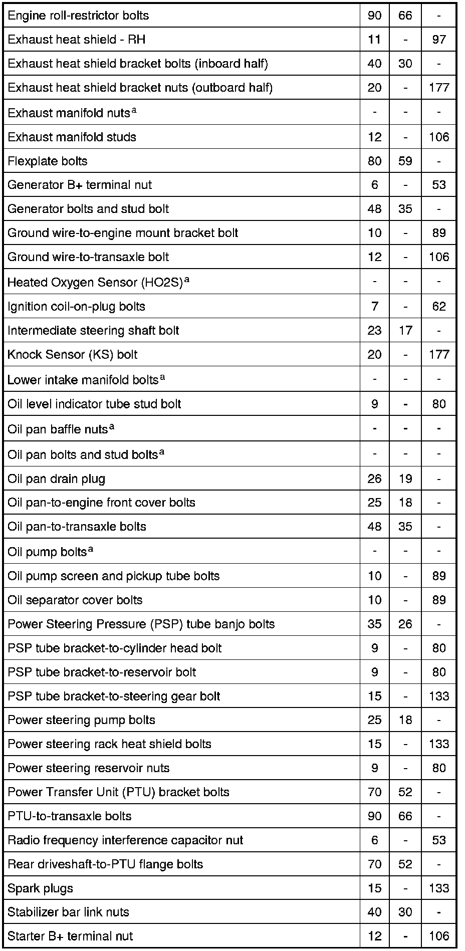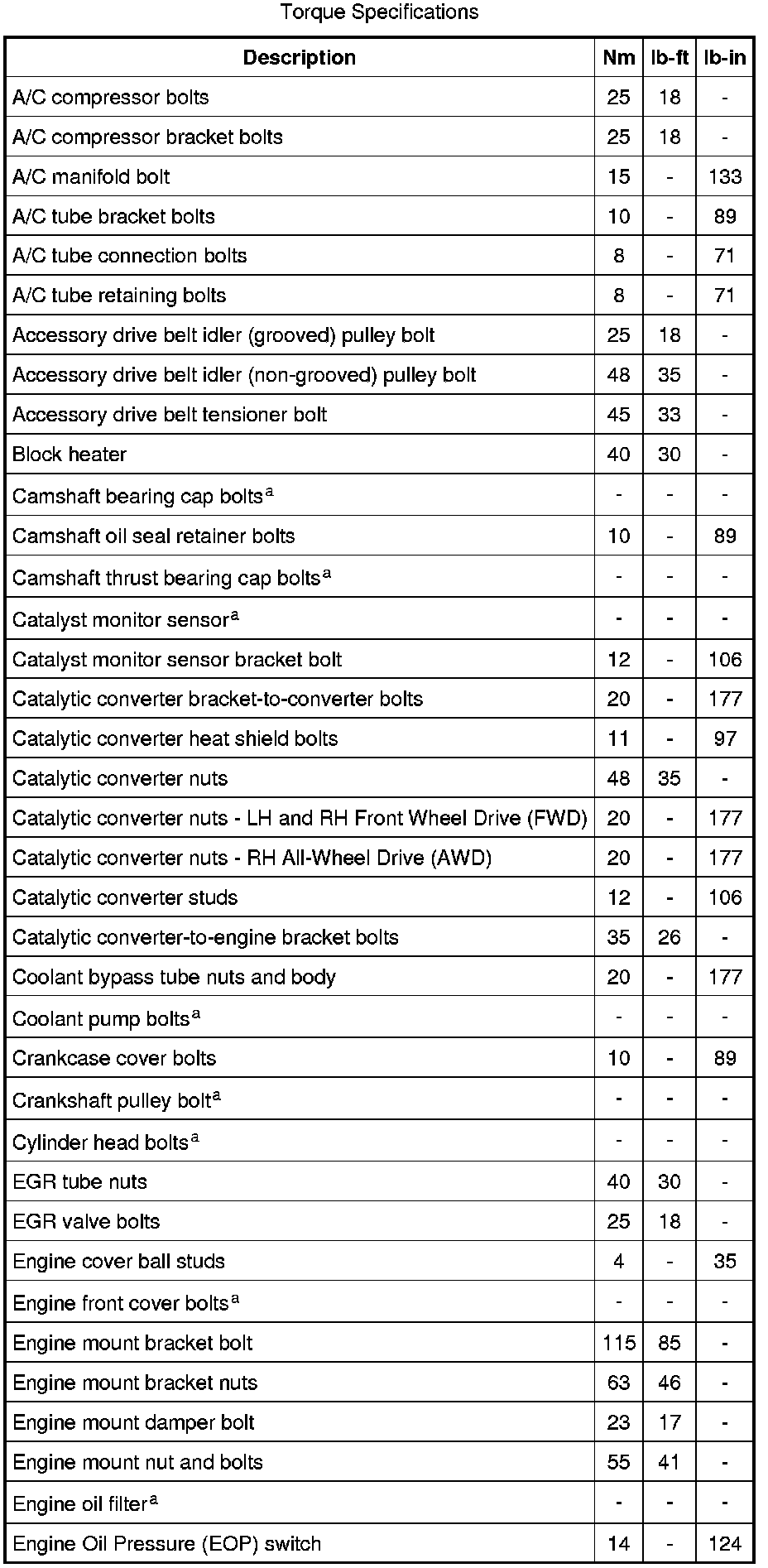 Torque Specifications